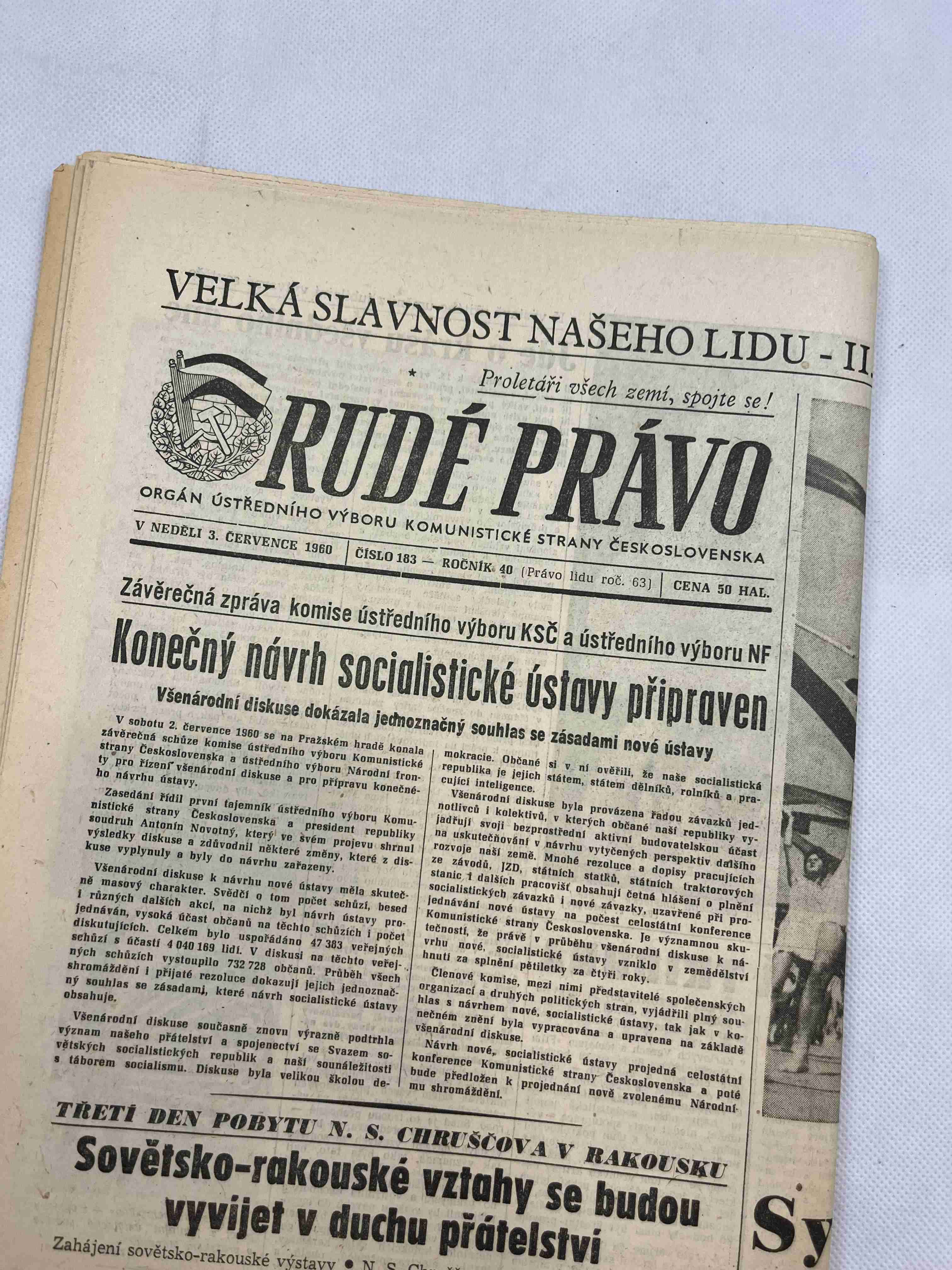 Noviny Rudé právo 3. 7. 1960