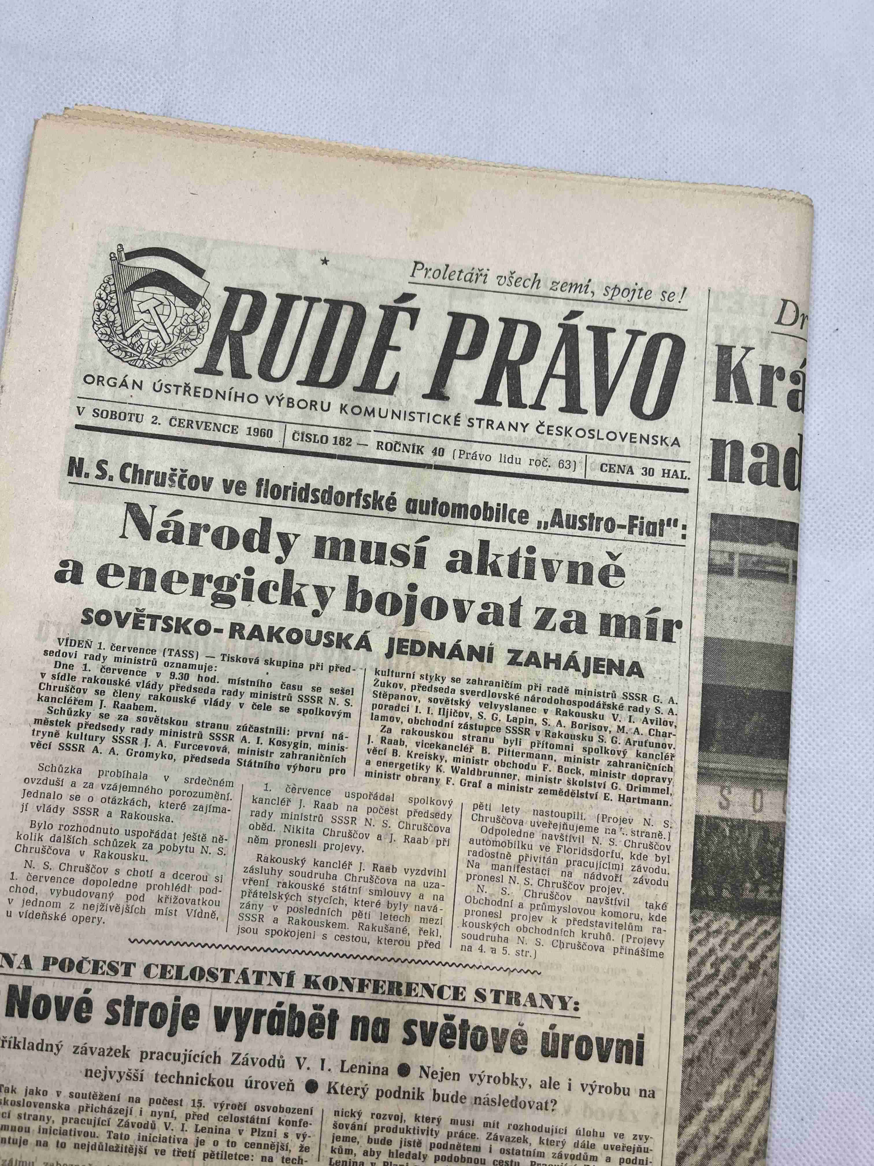 Noviny Rudé právo 2. 7. 1960