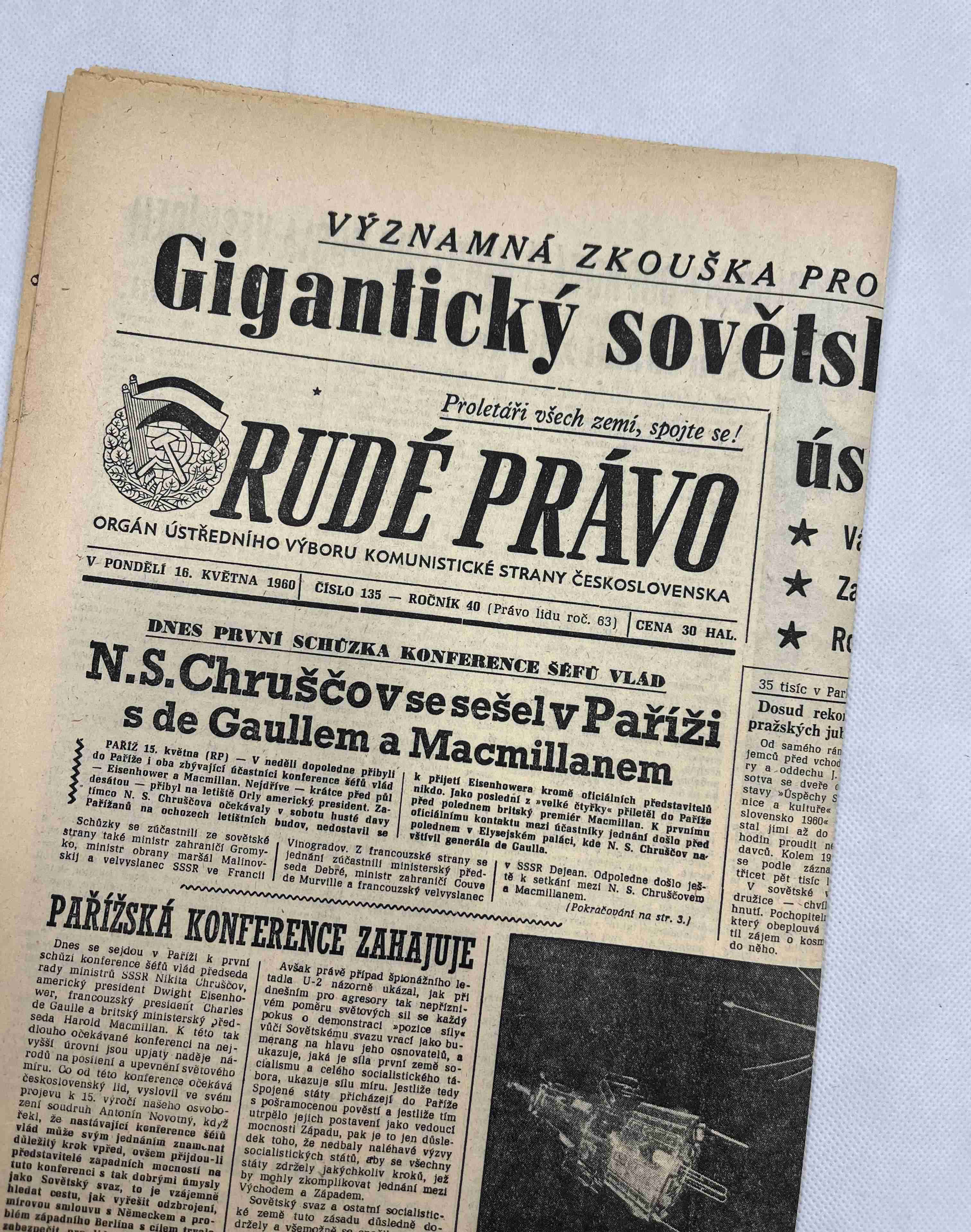 Noviny Rudé právo 16. 5. 1960