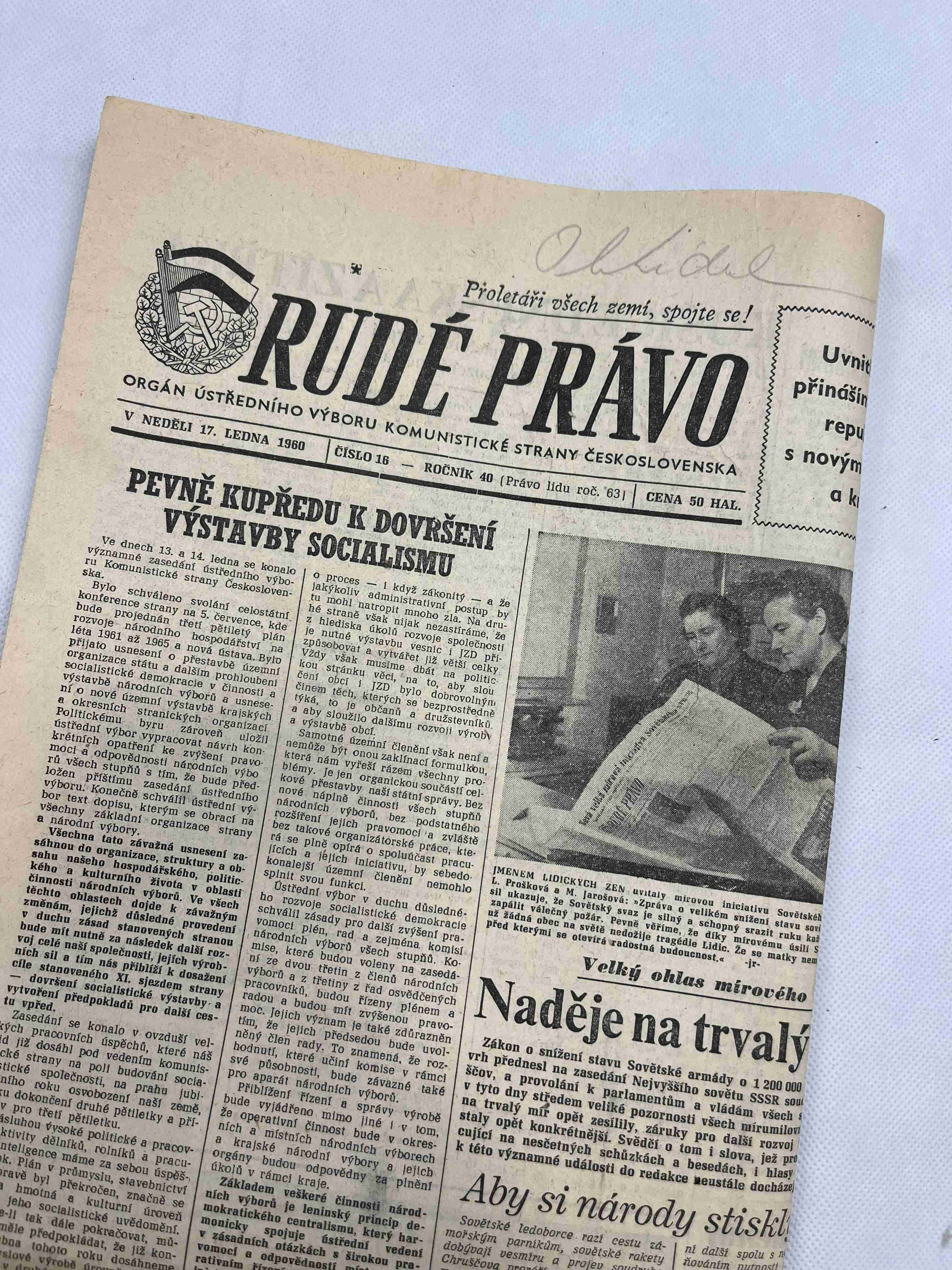 Noviny Rudé právo 17. 1. 1960