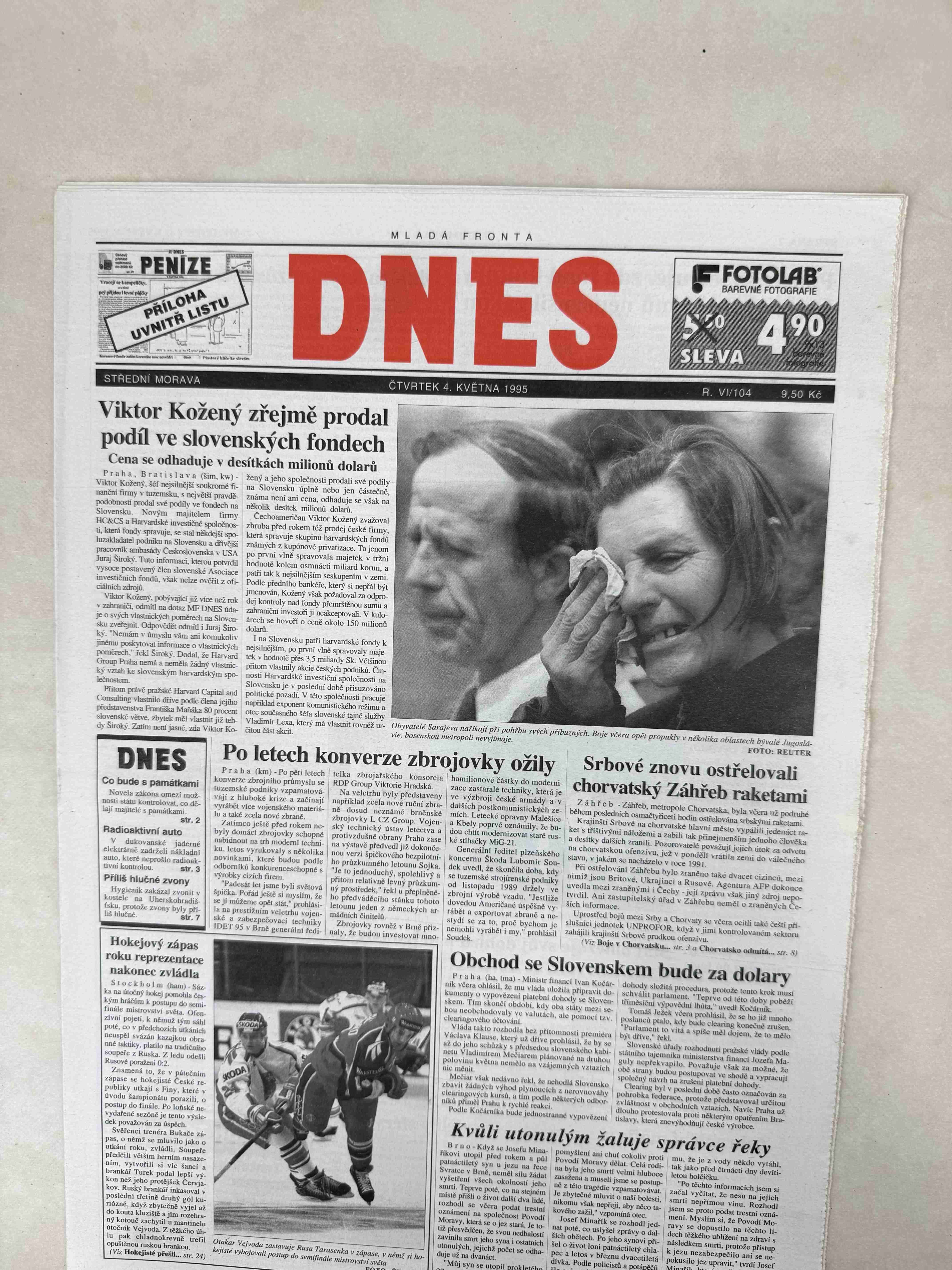 Nabízené noviny jsou 100% originální, jedná se o dobový výtisk.