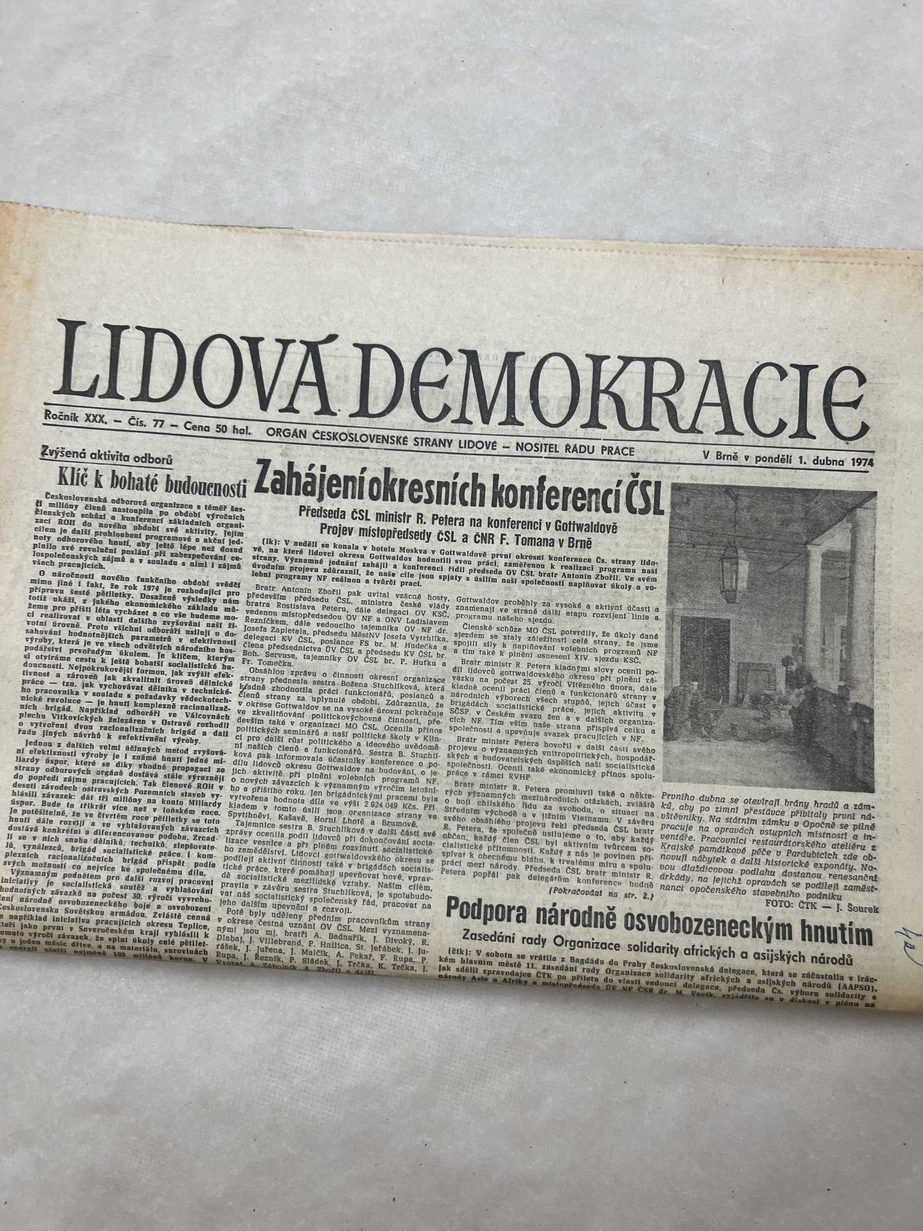 Noviny Lidová demokracie 1.4.1974