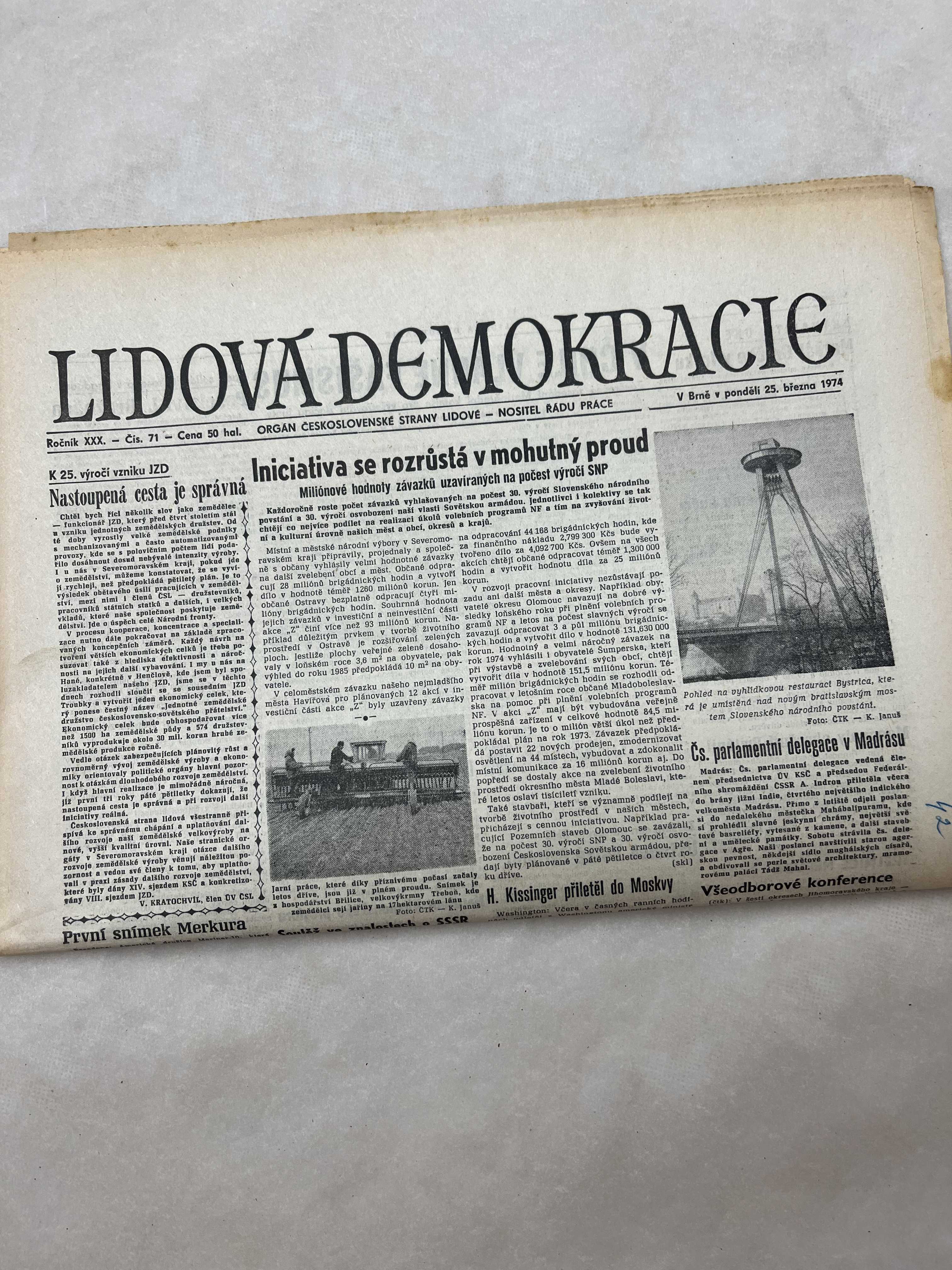 Noviny Lidová demokracie 25.3.1974