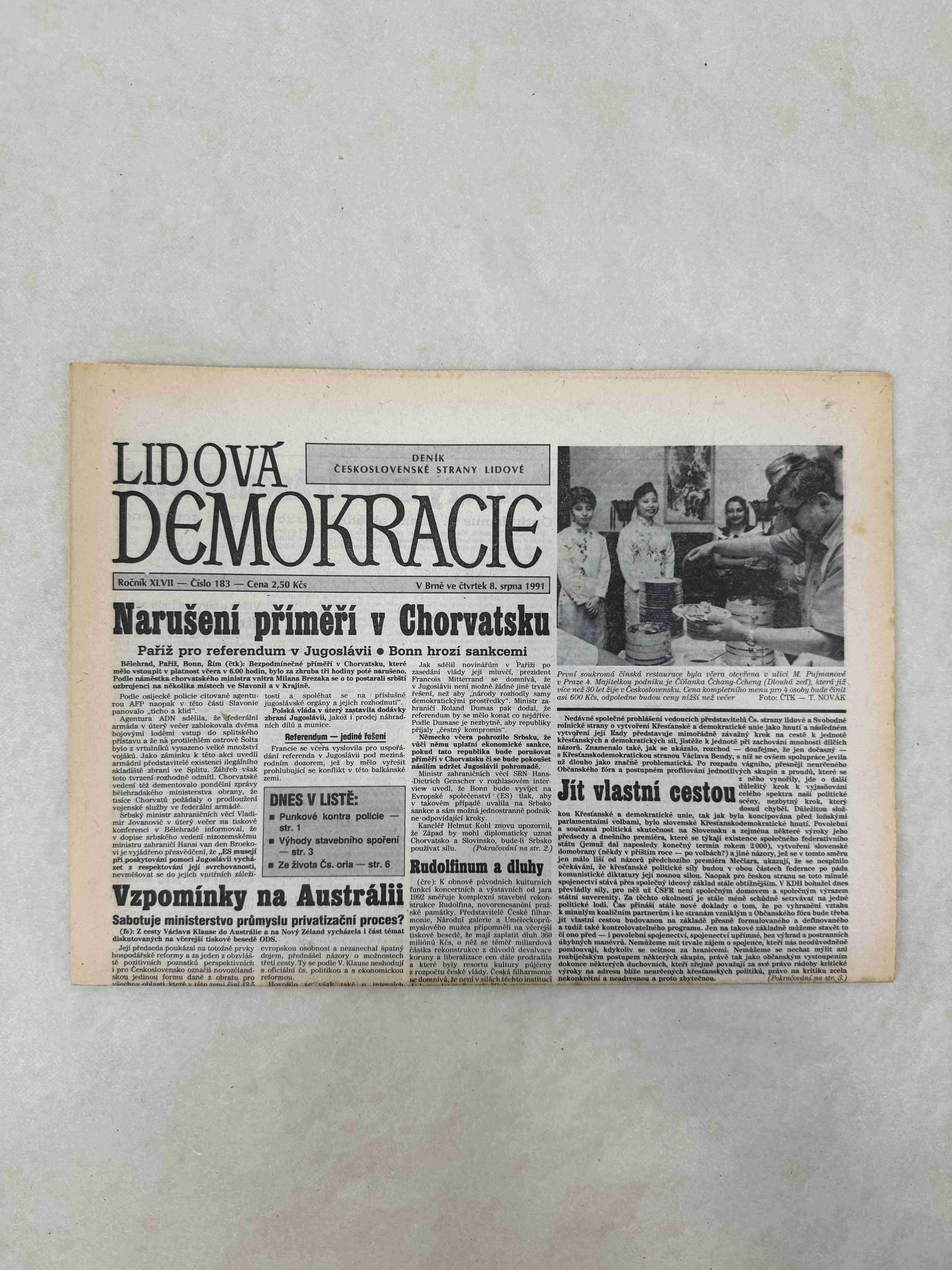 Nabízené noviny jsou 100% originální, jedná se o dobový výtisk.