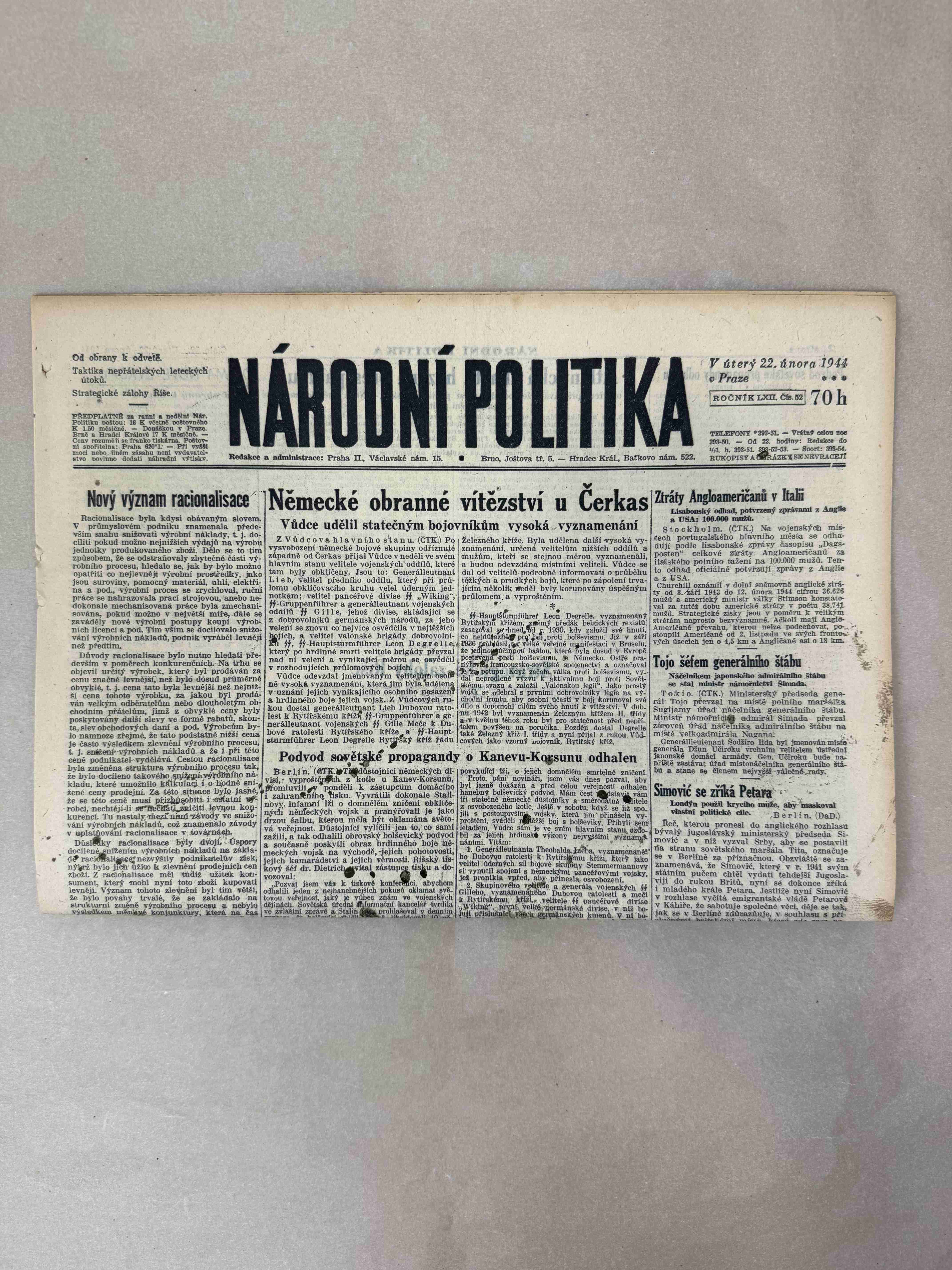 Nabízené noviny jsou určeny výhradně ke sběratelským účelům a neslouží k propagaci jakéhokoliv hnutí směřujícího k potlačení práv a svobod člověka (nacistického, komunistického apod.). Prodávající se distancuje od výše uvedených hnutí a jejich myšlenek.