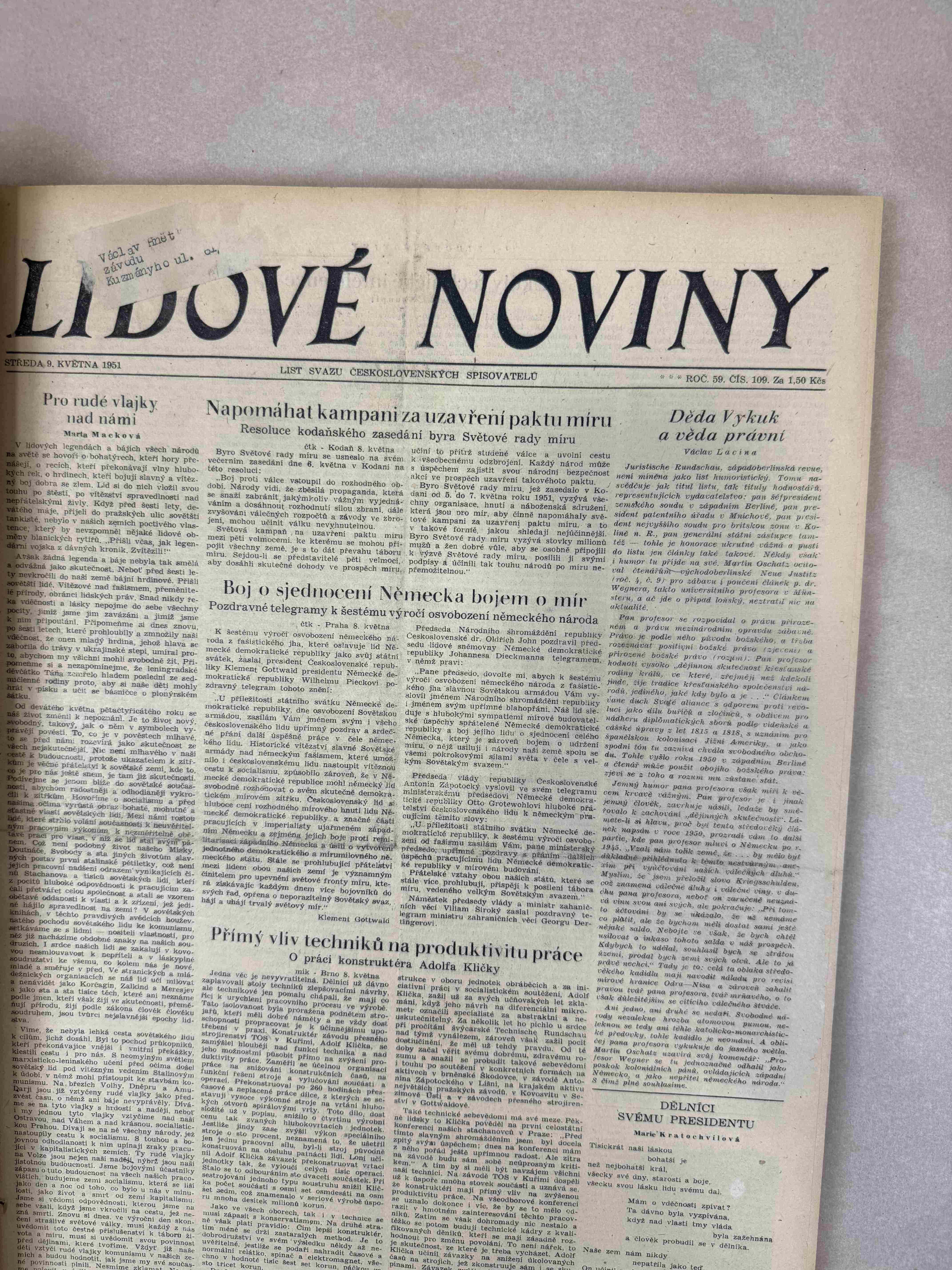 Nabízené noviny jsou určeny výhradně ke sběratelským účelům a neslouží k propagaci jakéhokoliv hnutí směřujícího k potlačení práv a svobod člověka (nacistického, komunistického apod.). Prodávající se distancuje od výše uvedených hnutí a jejich myšlenek.
