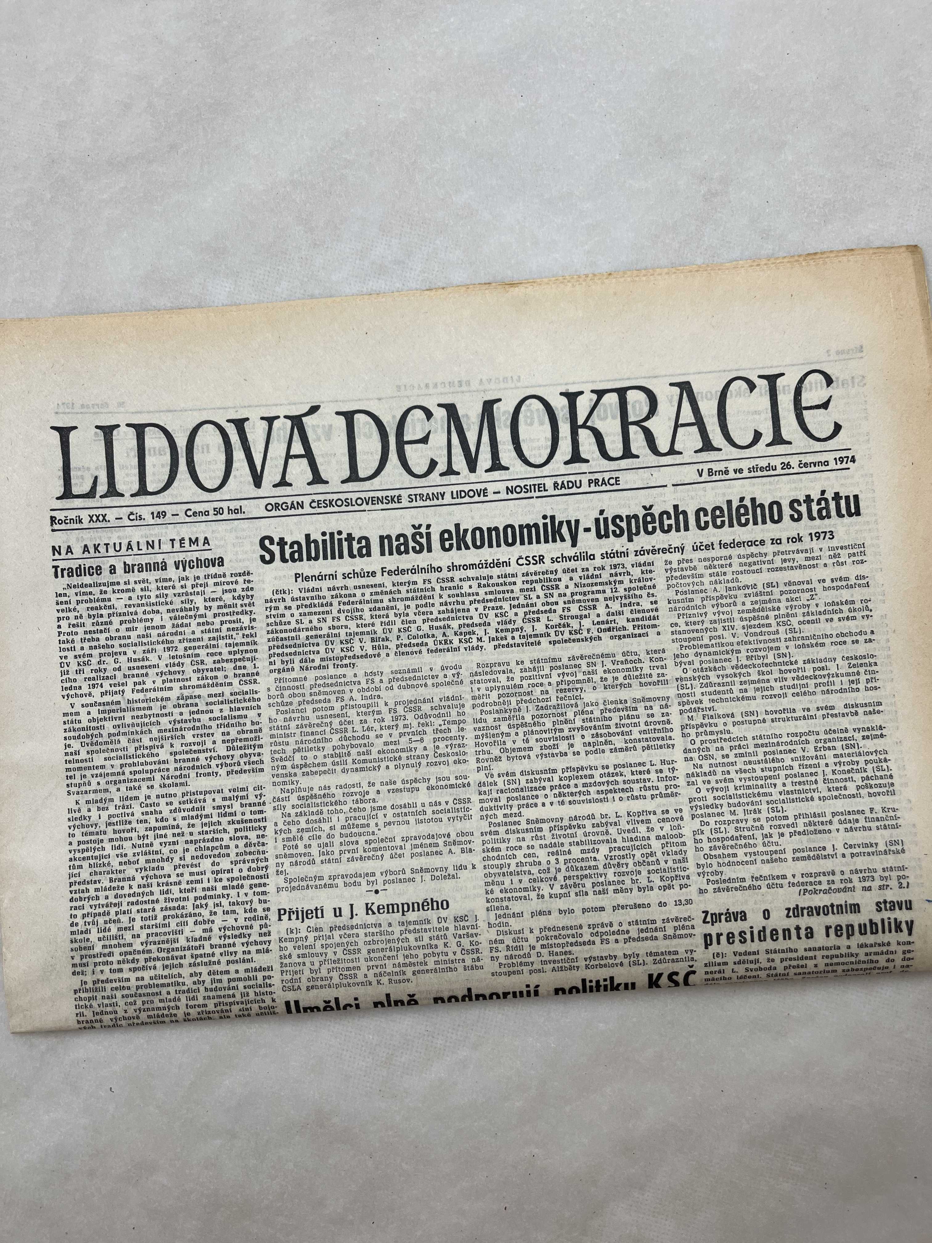 Noviny Lidová demokracie 26.6.1974