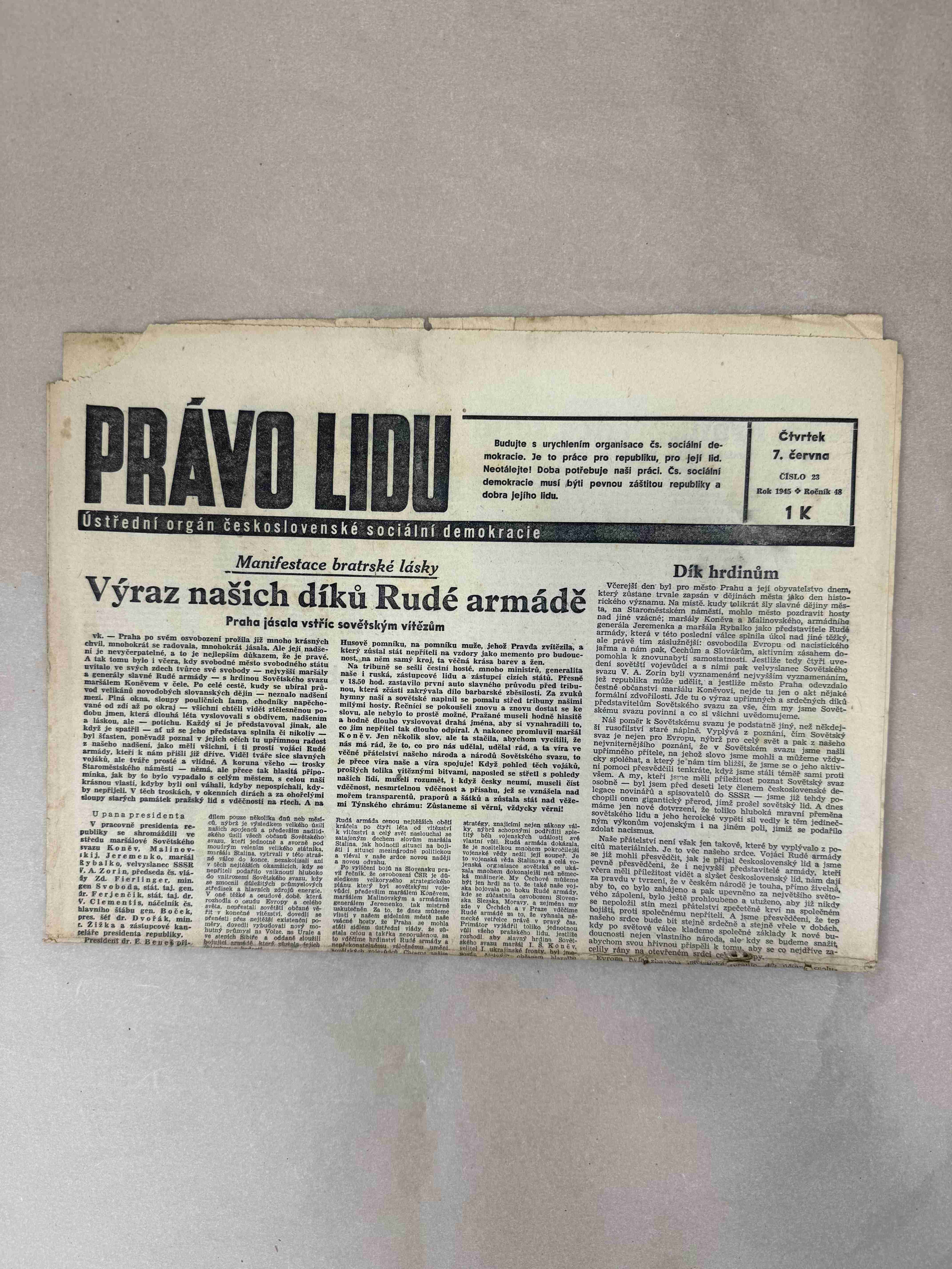 Nabízené noviny jsou určeny výhradně ke sběratelským účelům a neslouží k propagaci jakéhokoliv hnutí směřujícího k potlačení práv a svobod člověka (nacistického, komunistického apod.). Prodávající se distancuje od výše uvedených hnutí a jejich myšlenek.