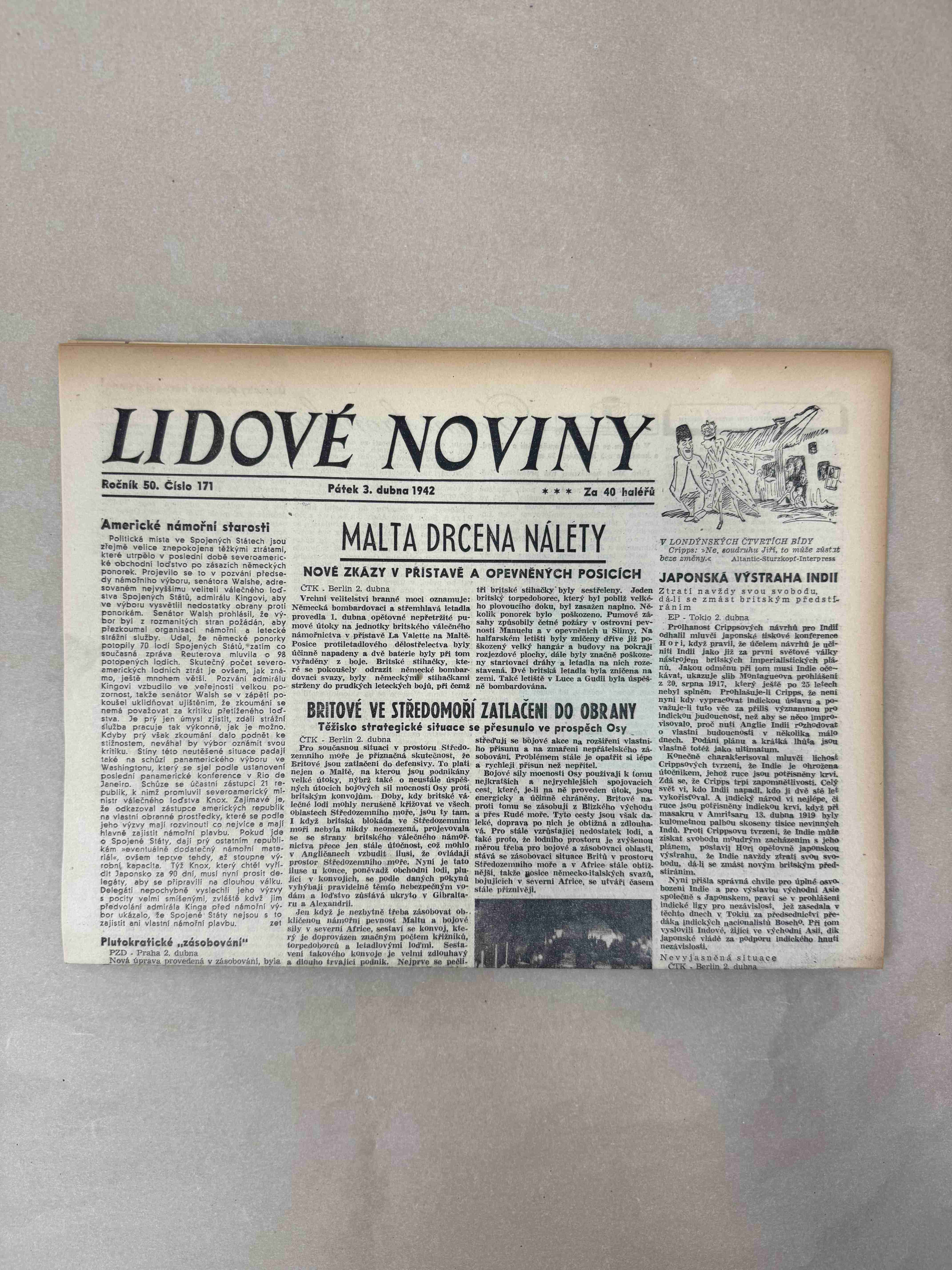 Originální dobový výtisk novin, nejedná se o reprodukci!