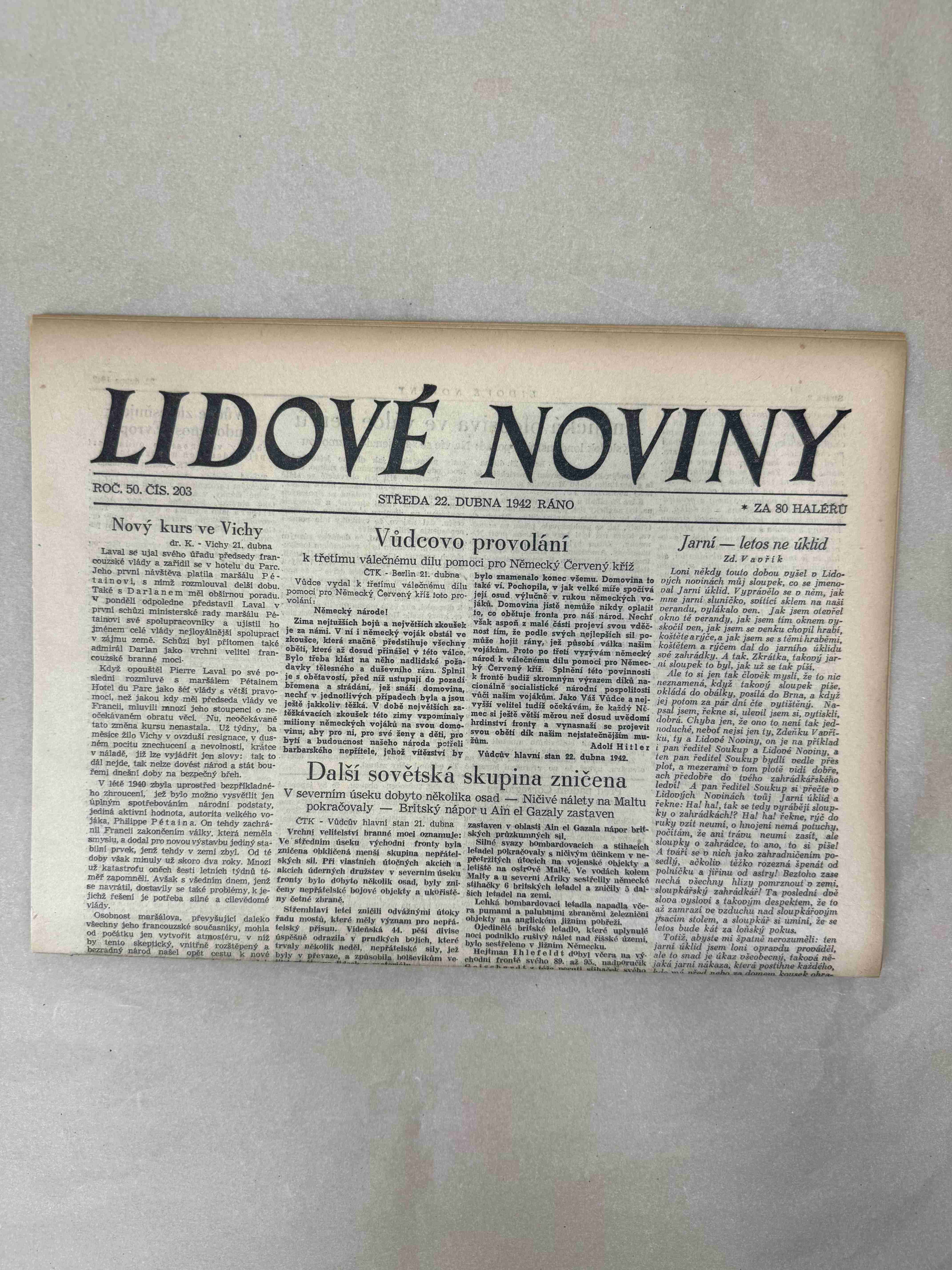 Nabízené noviny jsou určeny výhradně ke sběratelským účelům a neslouží k propagaci jakéhokoliv hnutí směřujícího k potlačení práv a svobod člověka (nacistického, komunistického apod.). Prodávající se distancuje od výše uvedených hnutí a jejich myšlenek.