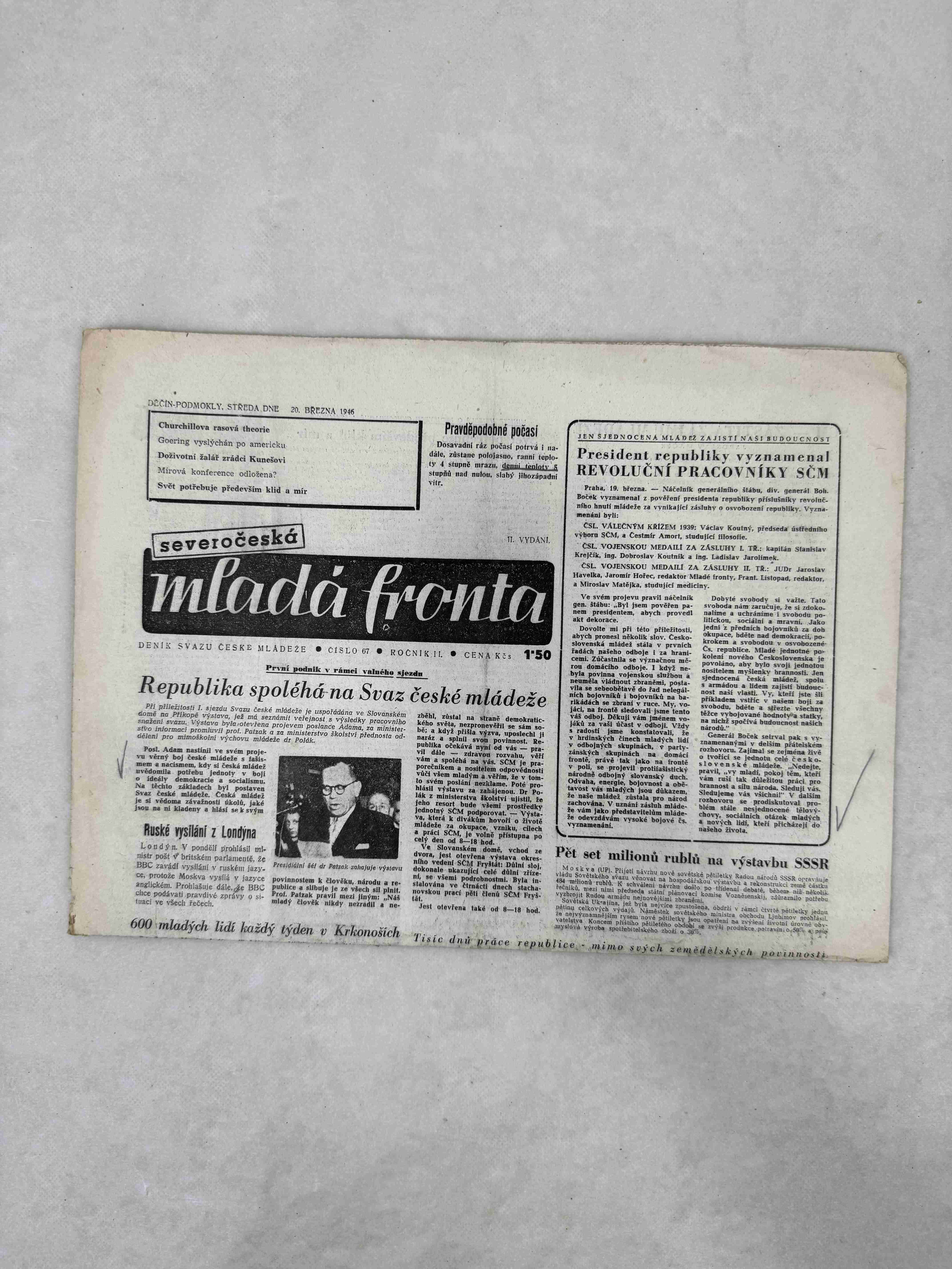 Originální dobový výtisk novin, nejedná se o reprodukci!