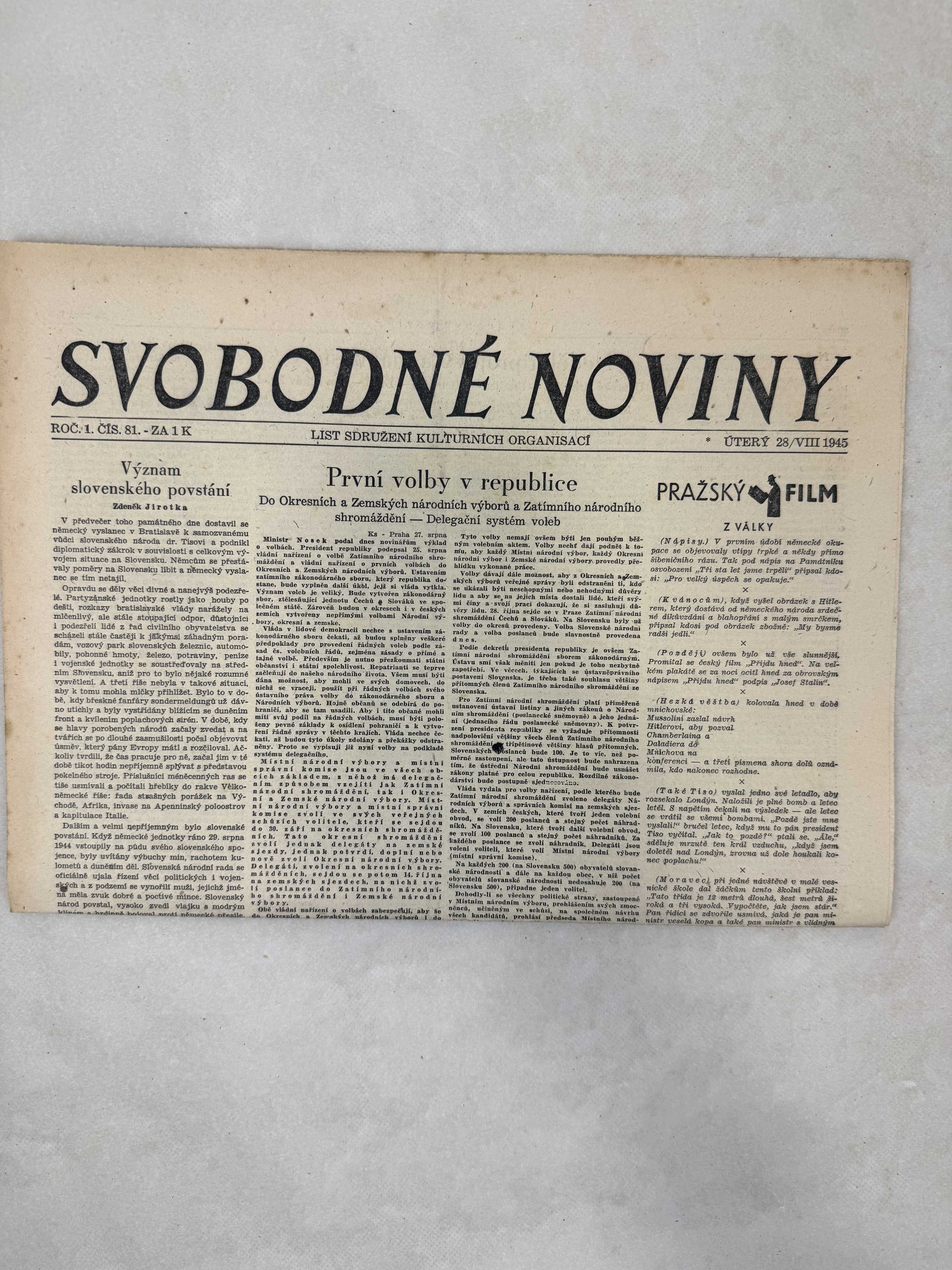 Nabízené noviny jsou 100% originální, jedná se o dobový výtisk.
