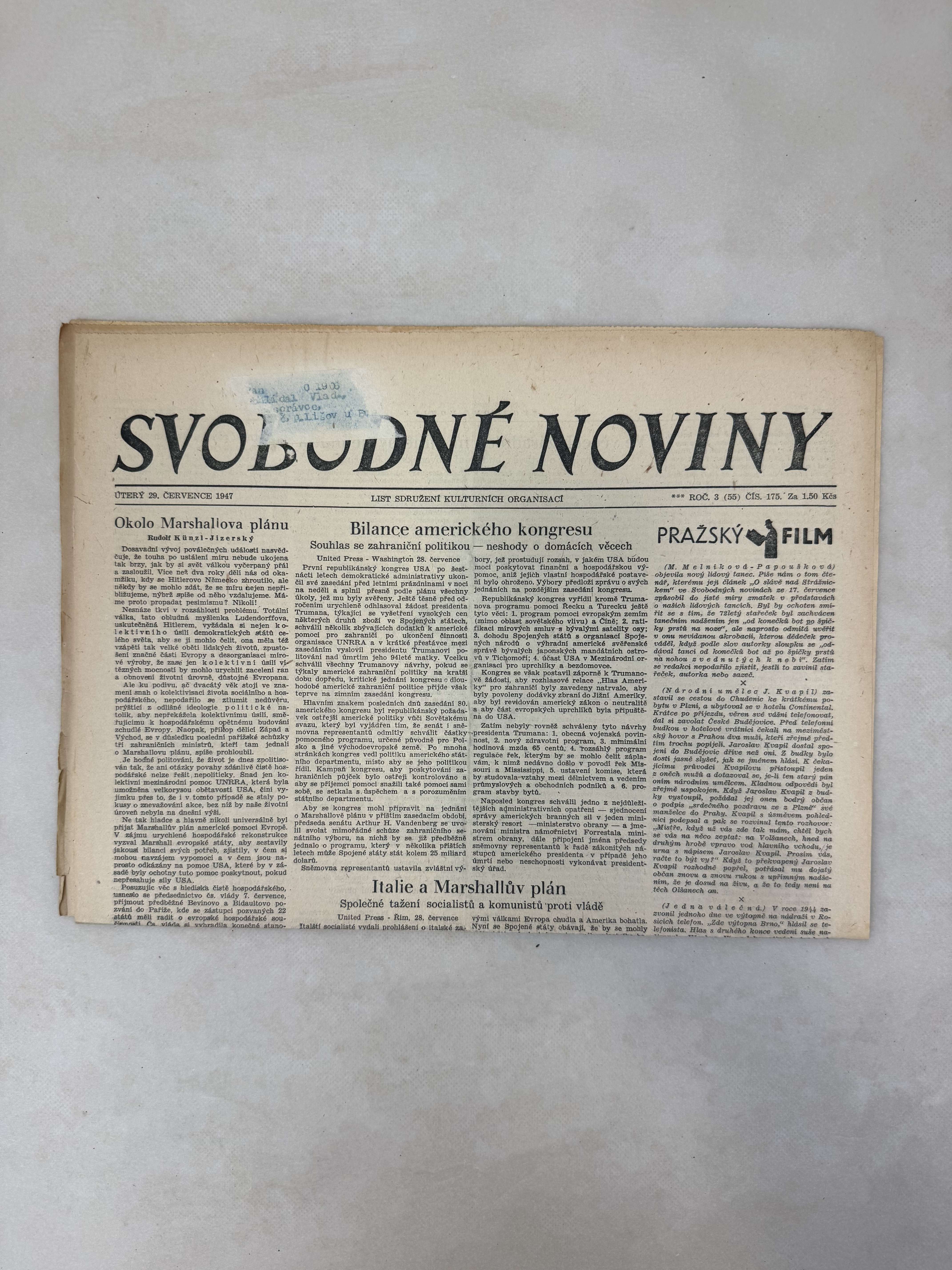 Svobodné noviny 29.7.1947