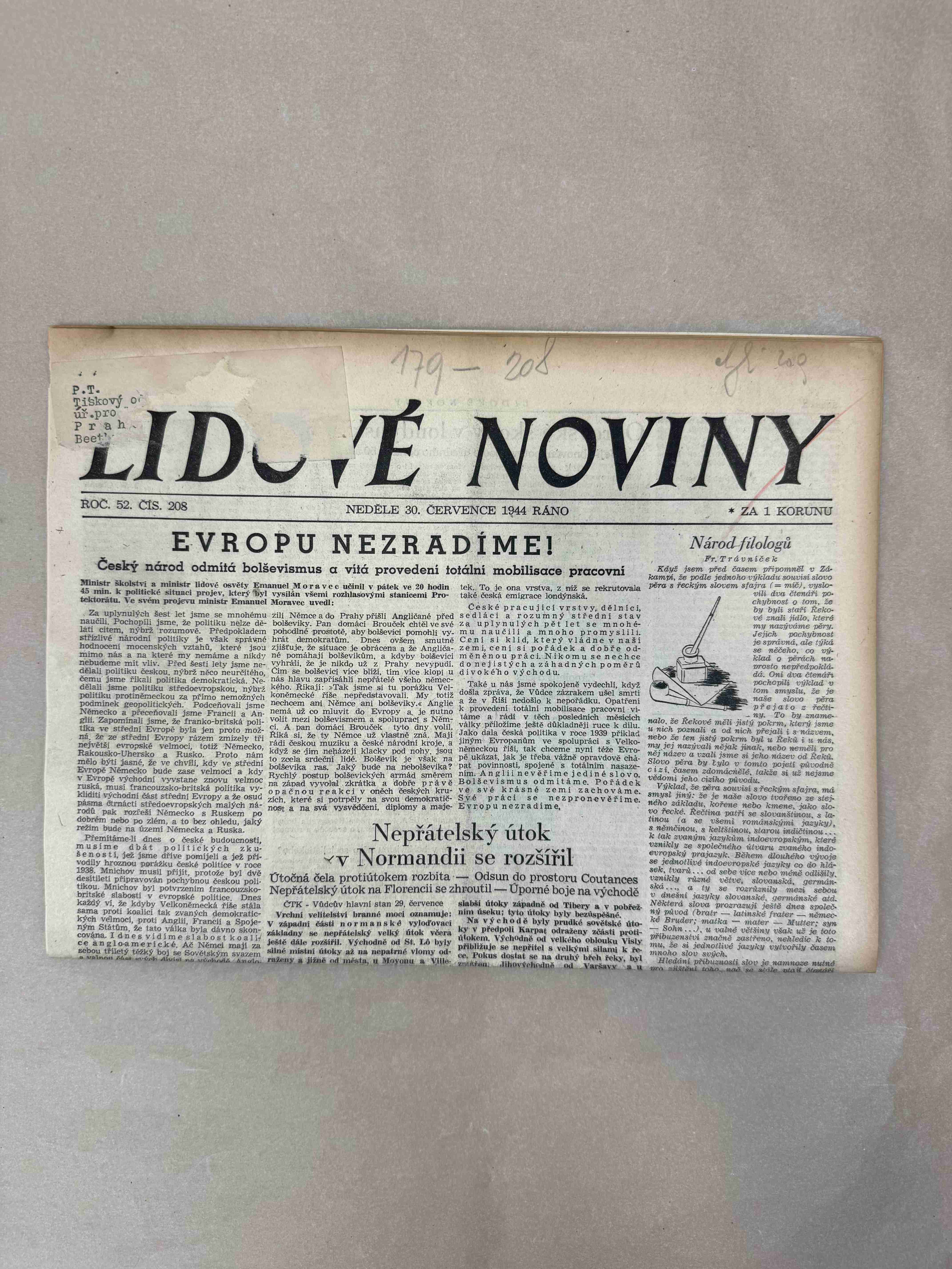 Nabízené noviny jsou určeny výhradně ke sběratelským účelům a neslouží k propagaci jakéhokoliv hnutí směřujícího k potlačení práv a svobod člověka (nacistického, komunistického apod.). Prodávající se distancuje od výše uvedených hnutí a jejich myšlenek.