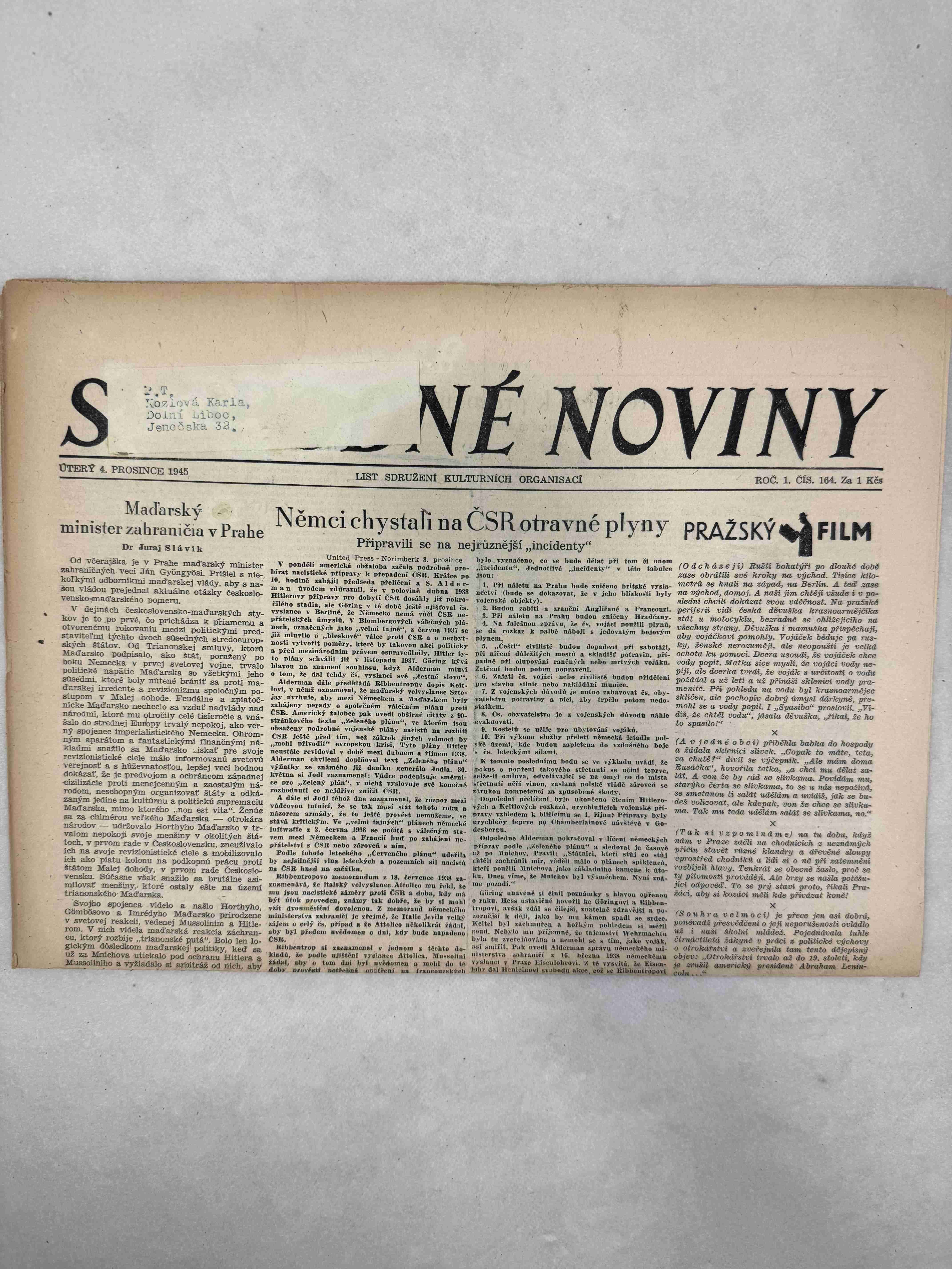 Nabízené noviny jsou 100% originální, jedná se o dobový výtisk.