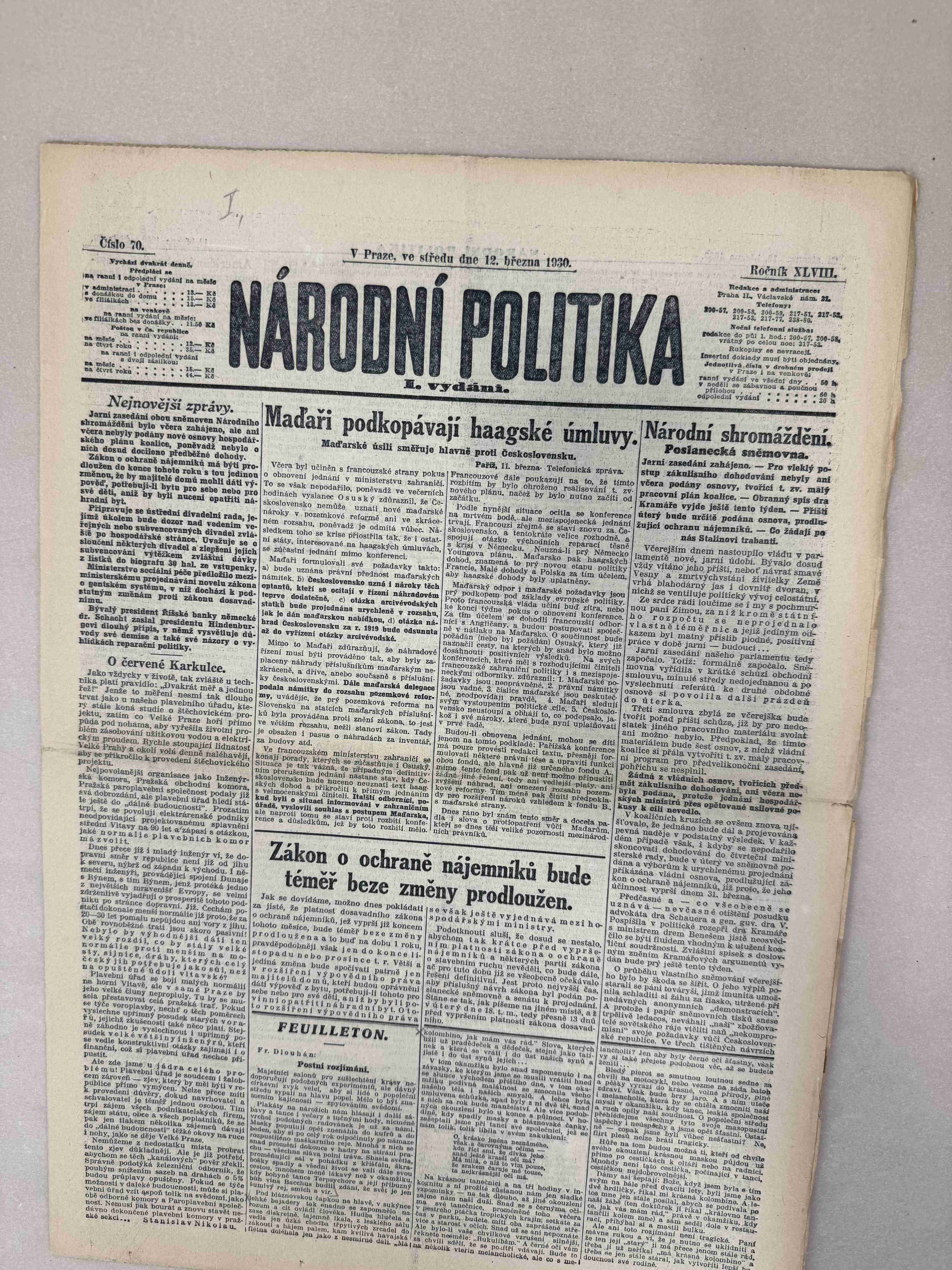 Originální dobový výtisk novin, nejedná se o reprodukci!