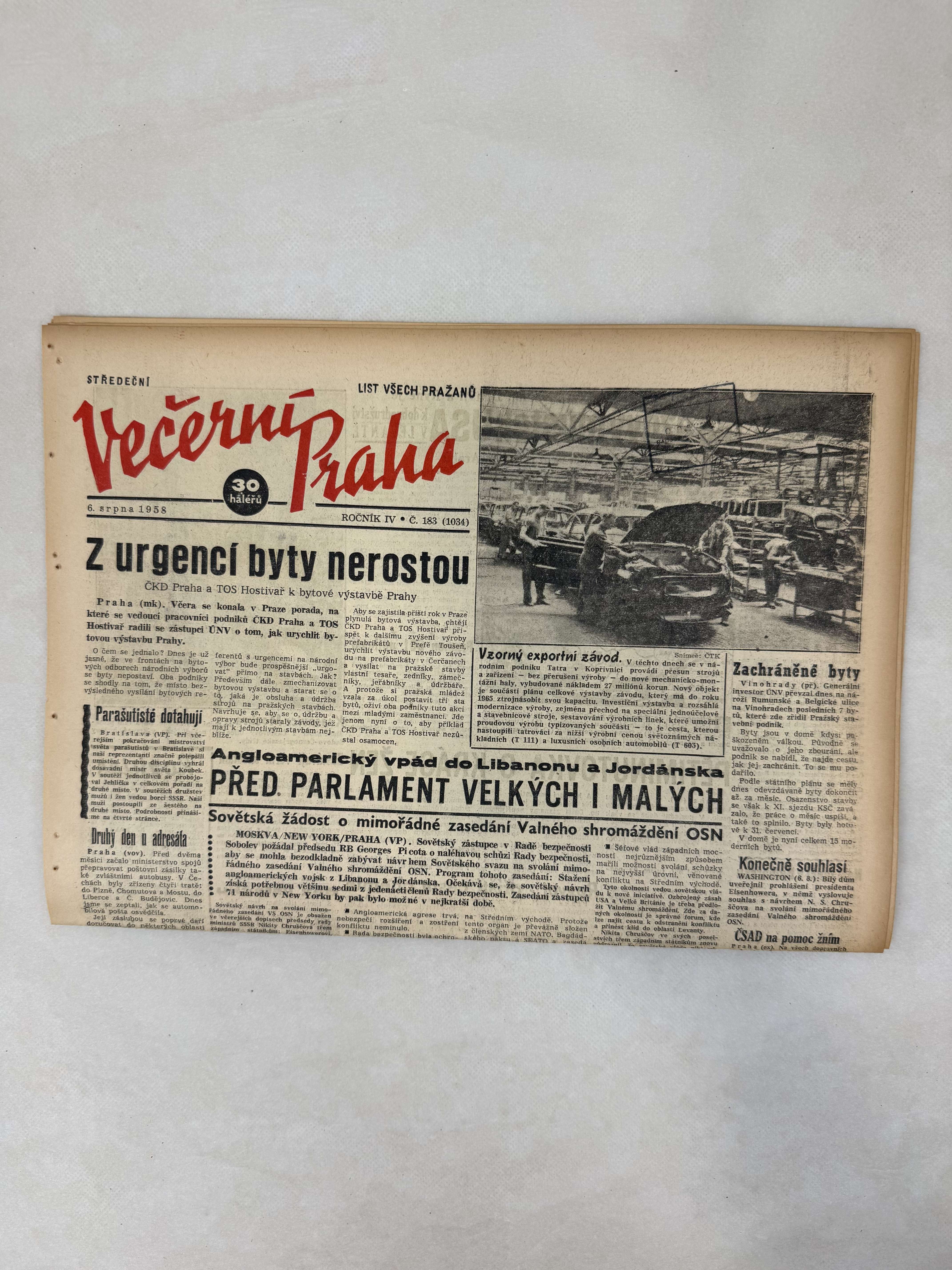Večerní Praha 6.8.1958