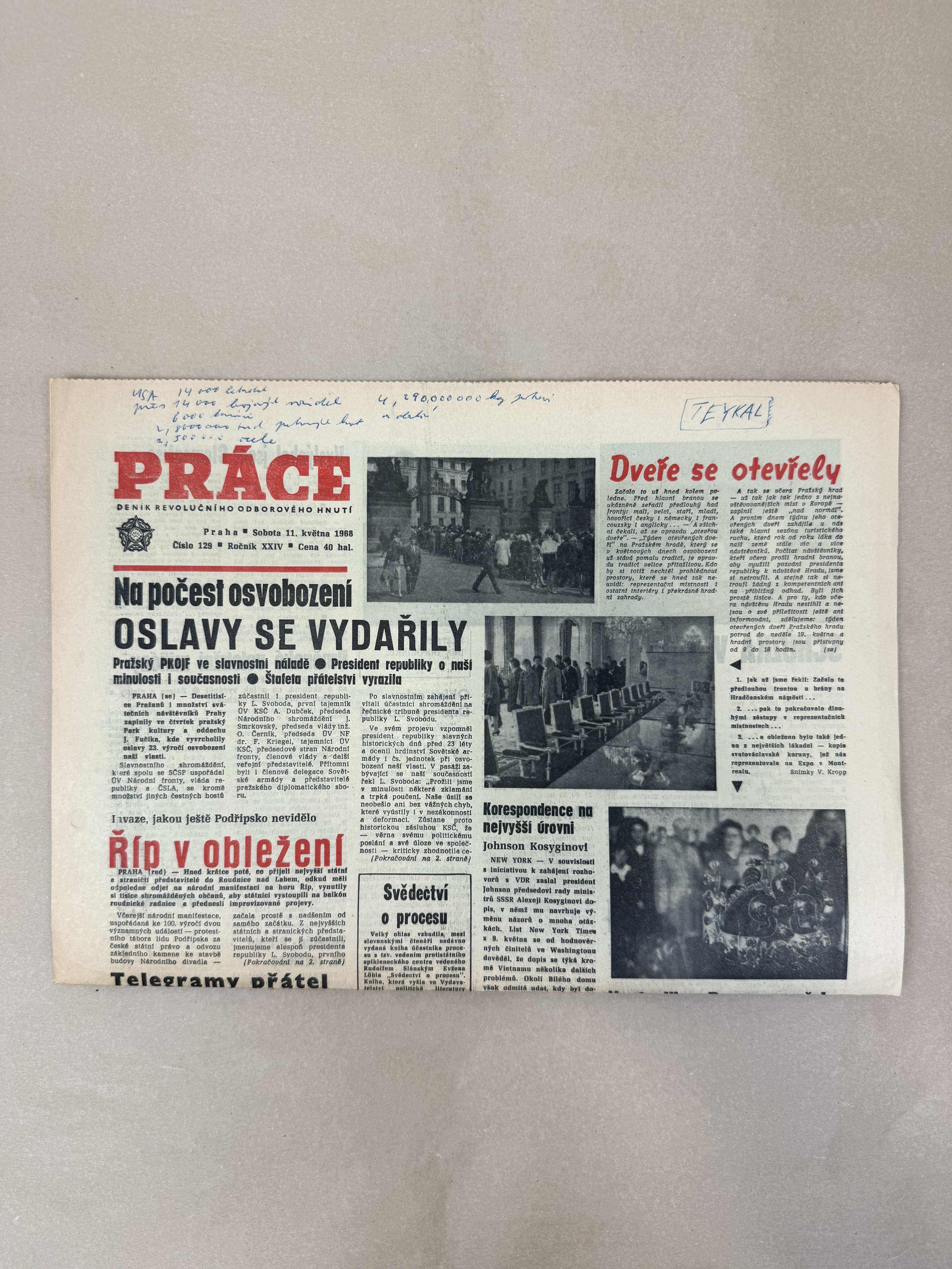 Originální dobový výtisk novin, nejedná se o reprodukci!