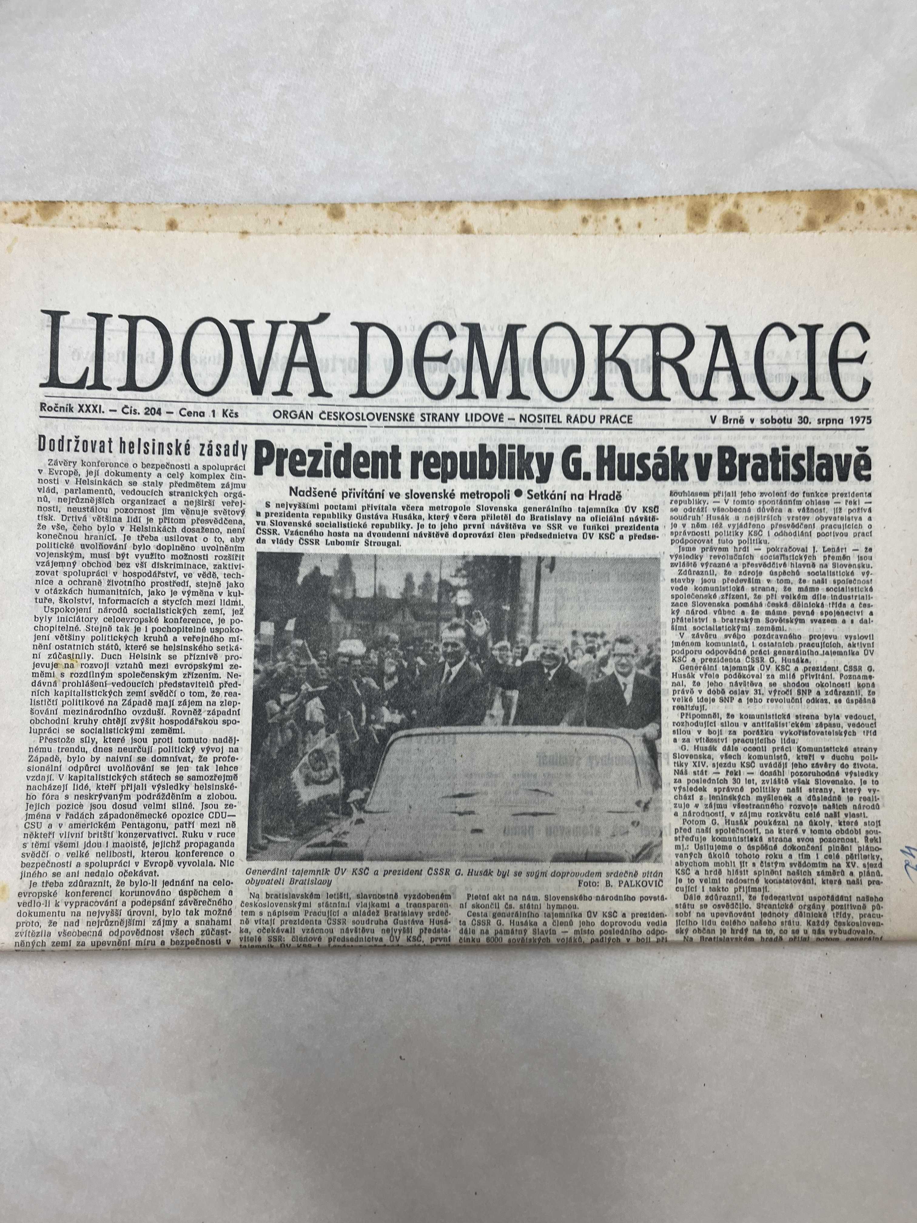 Noviny Lidová demokracie 30.8.1975