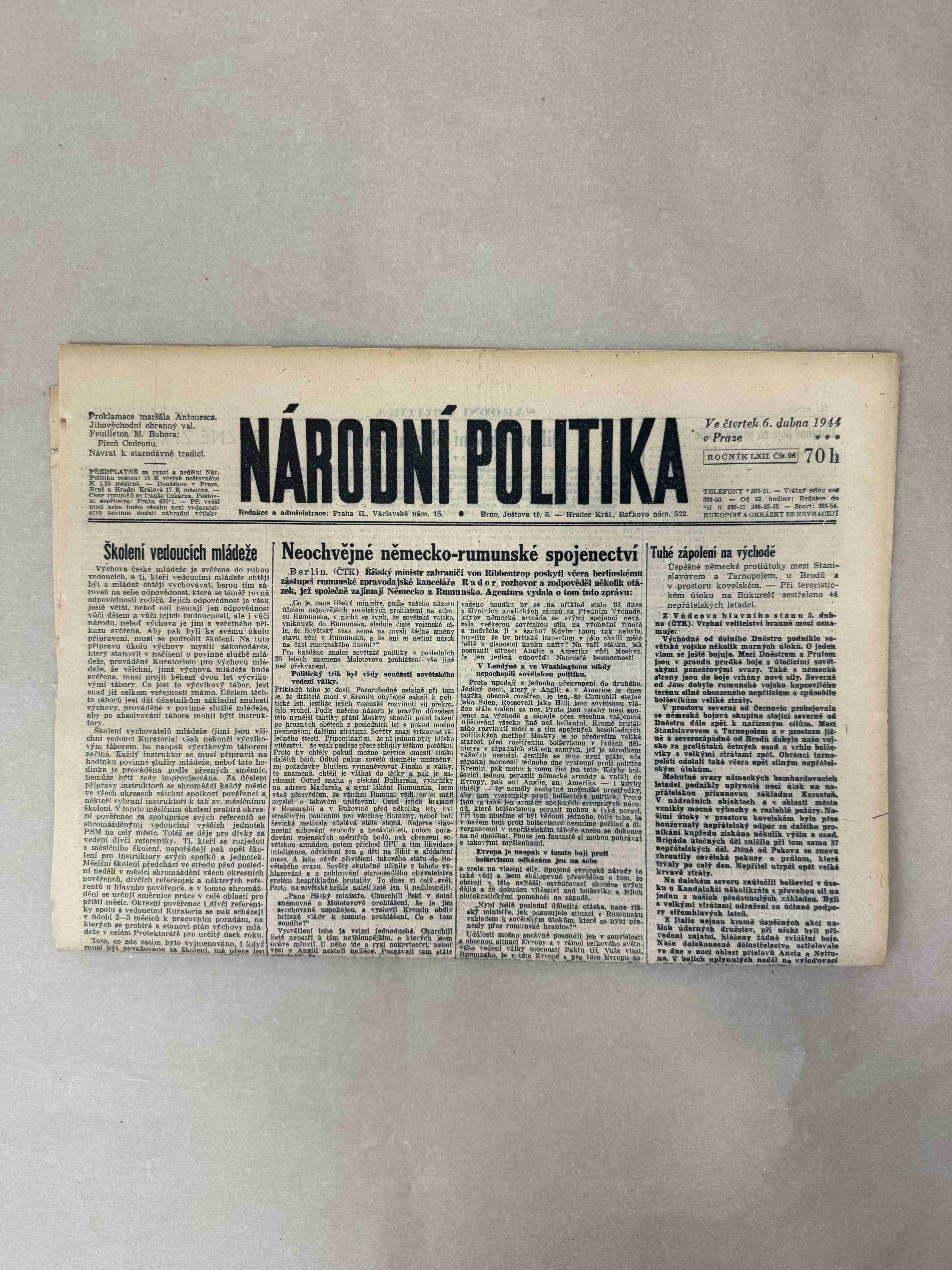 Nabízené noviny jsou určeny výhradně ke sběratelským účelům a neslouží k propagaci jakéhokoliv hnutí směřujícího k potlačení práv a svobod člověka (nacistického, komunistického apod.). Prodávající se distancuje od výše uvedených hnutí a jejich myšlenek.