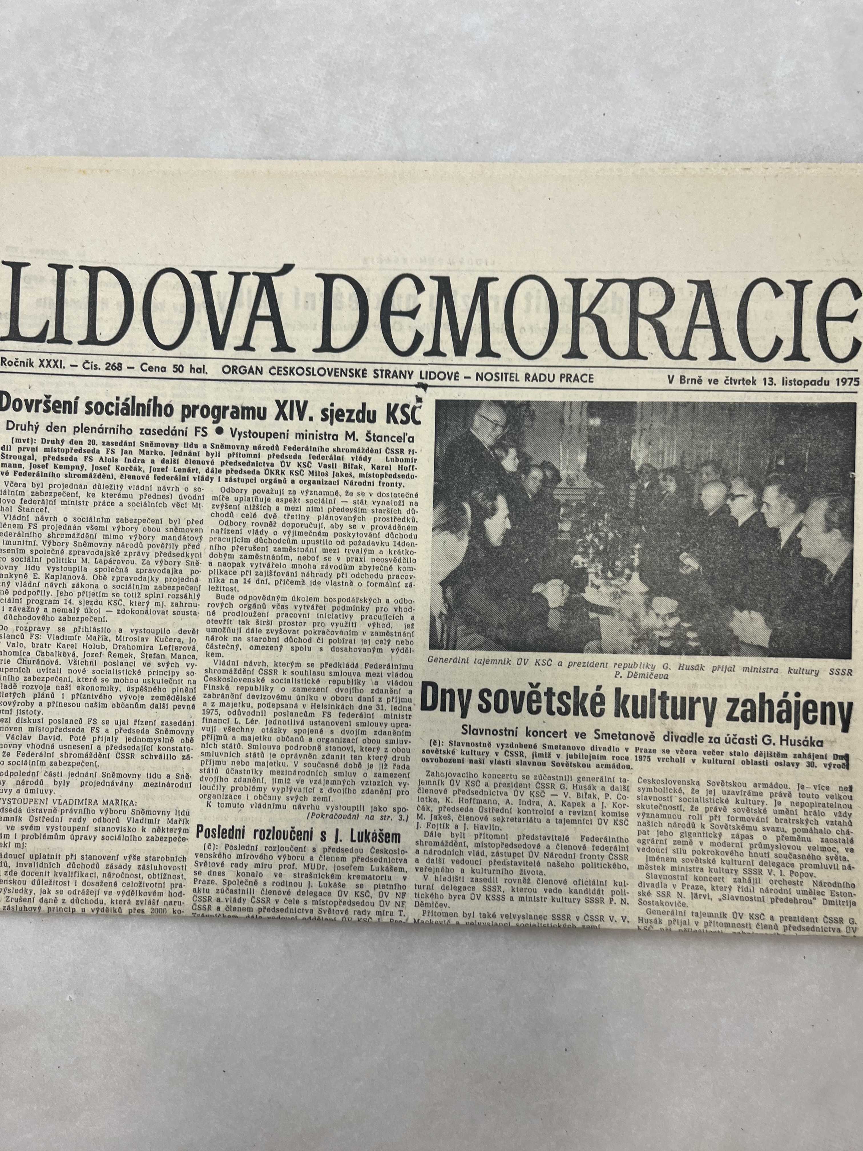 Noviny Lidová demokracie 13.11.1975