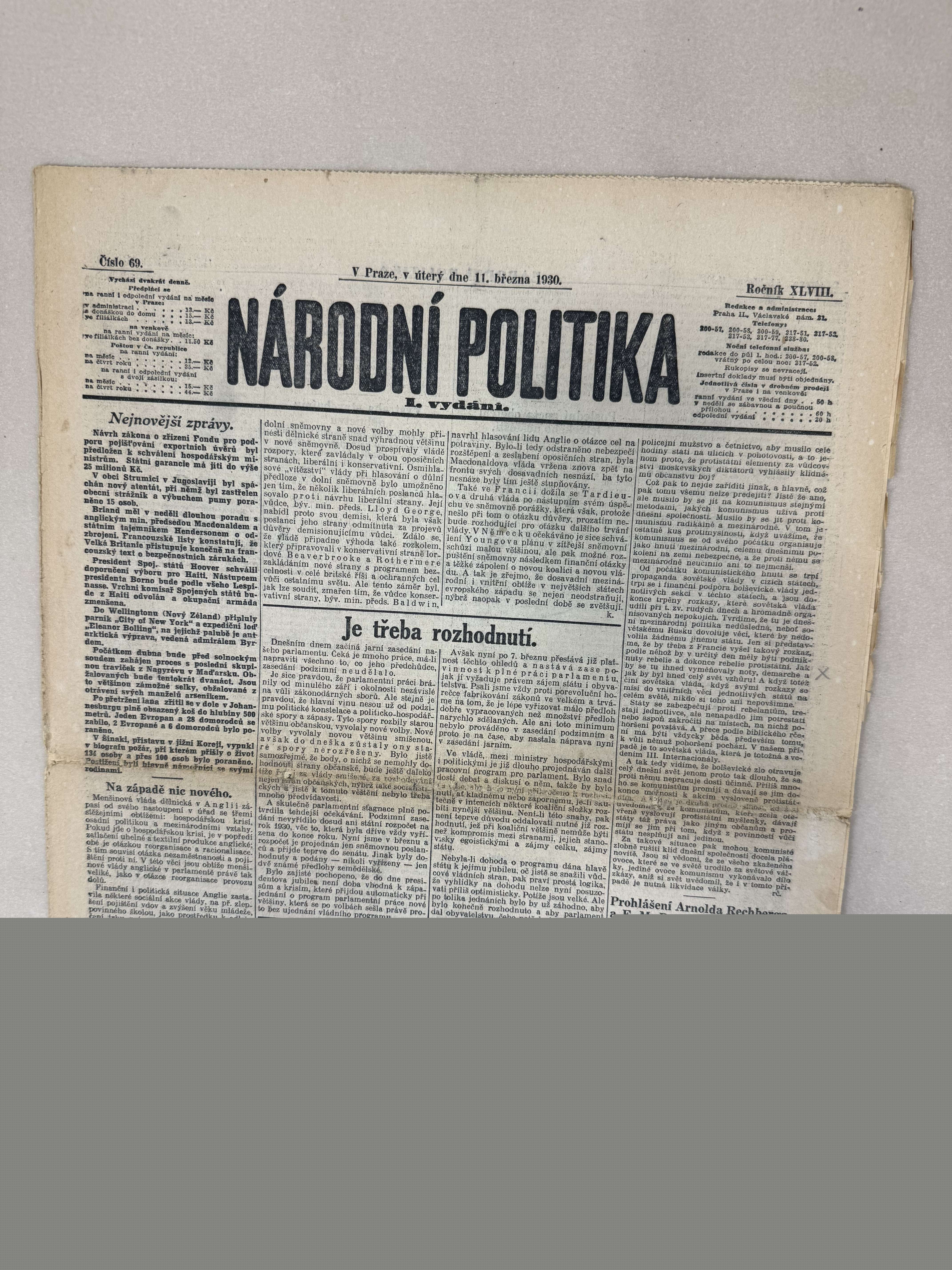 Národní politika 11.3.1930