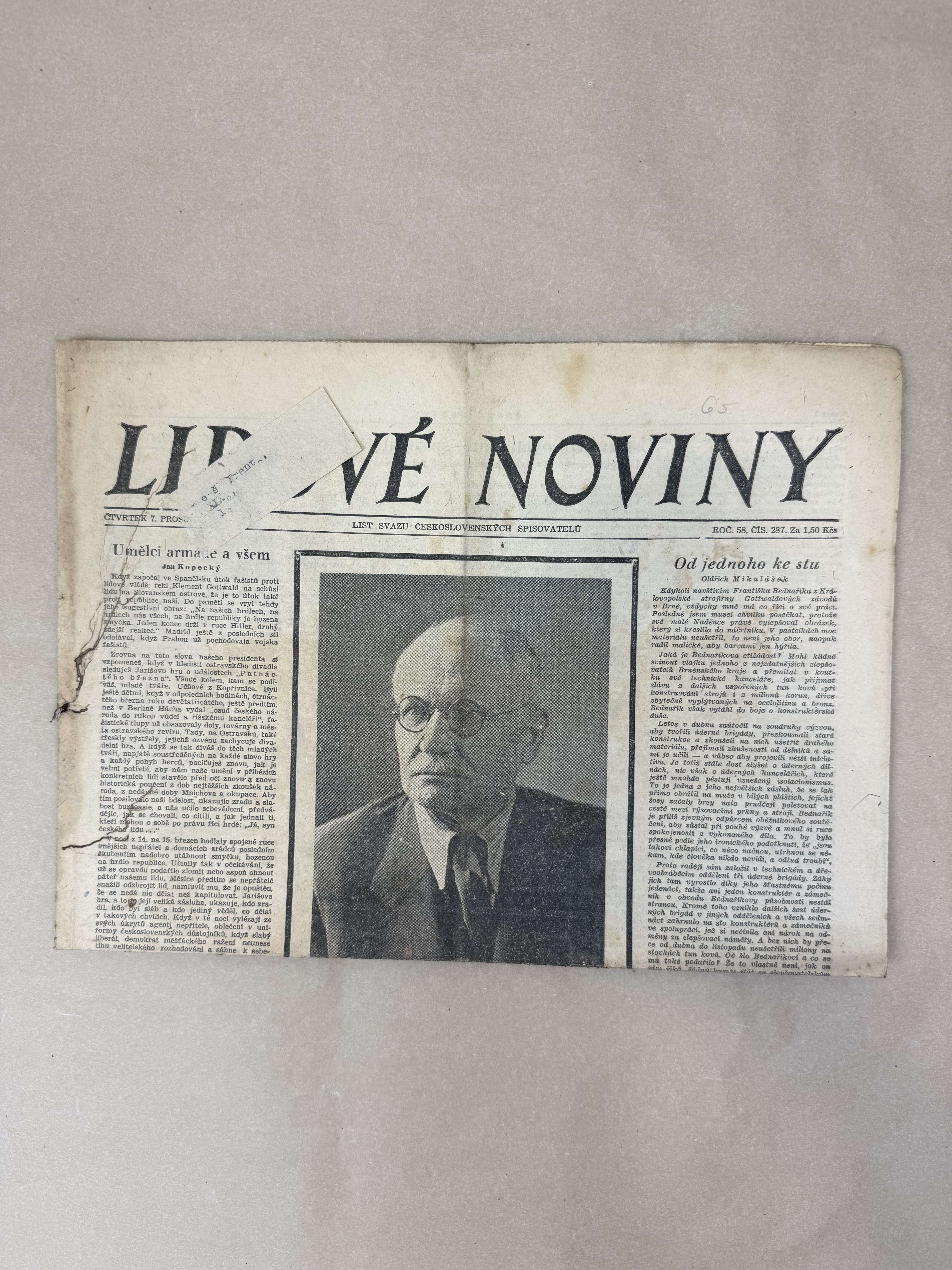 Originální dobový výtisk novin, nejedná se o reprodukci!