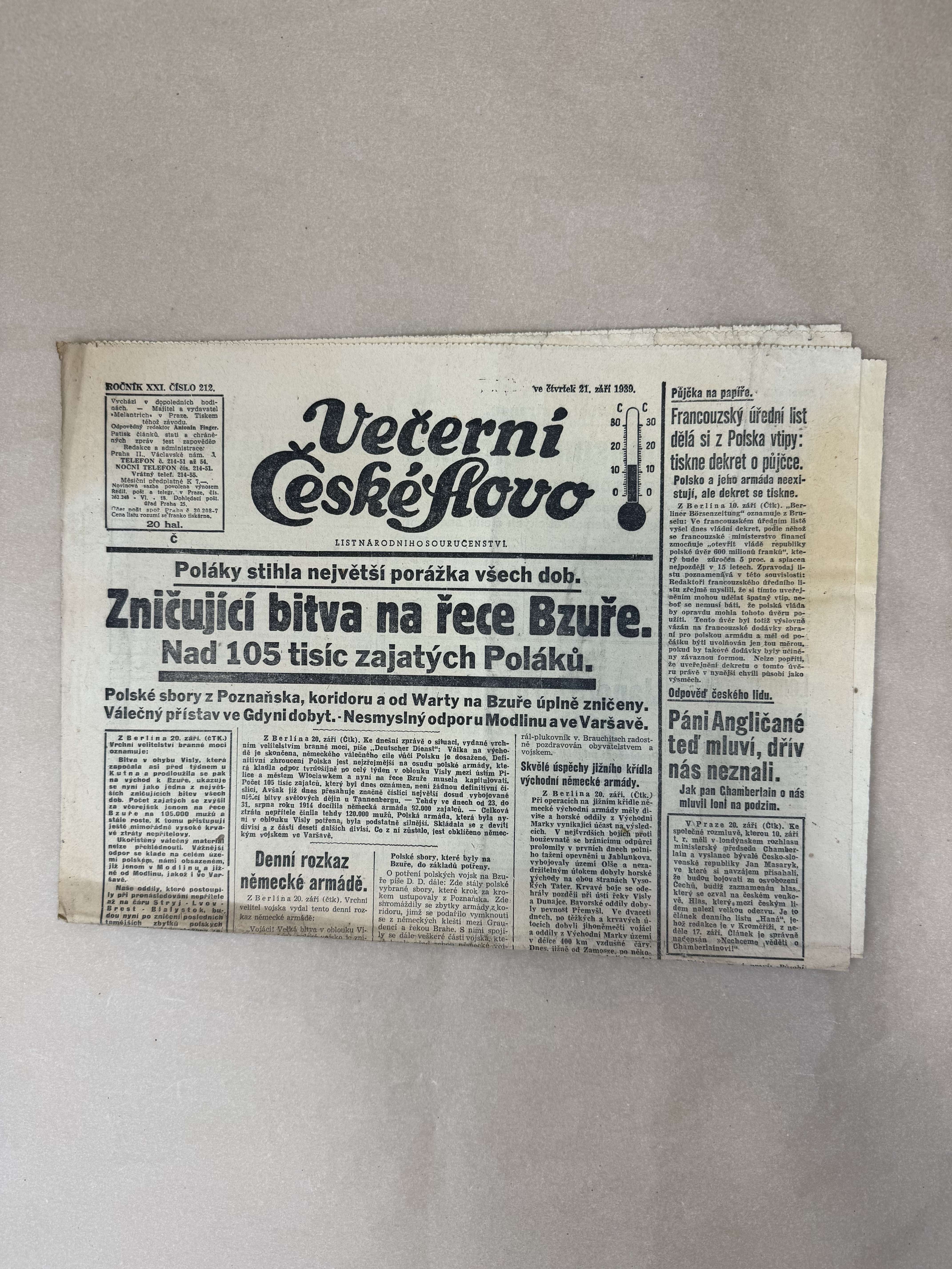 Večerní České slovo 21.9.1939