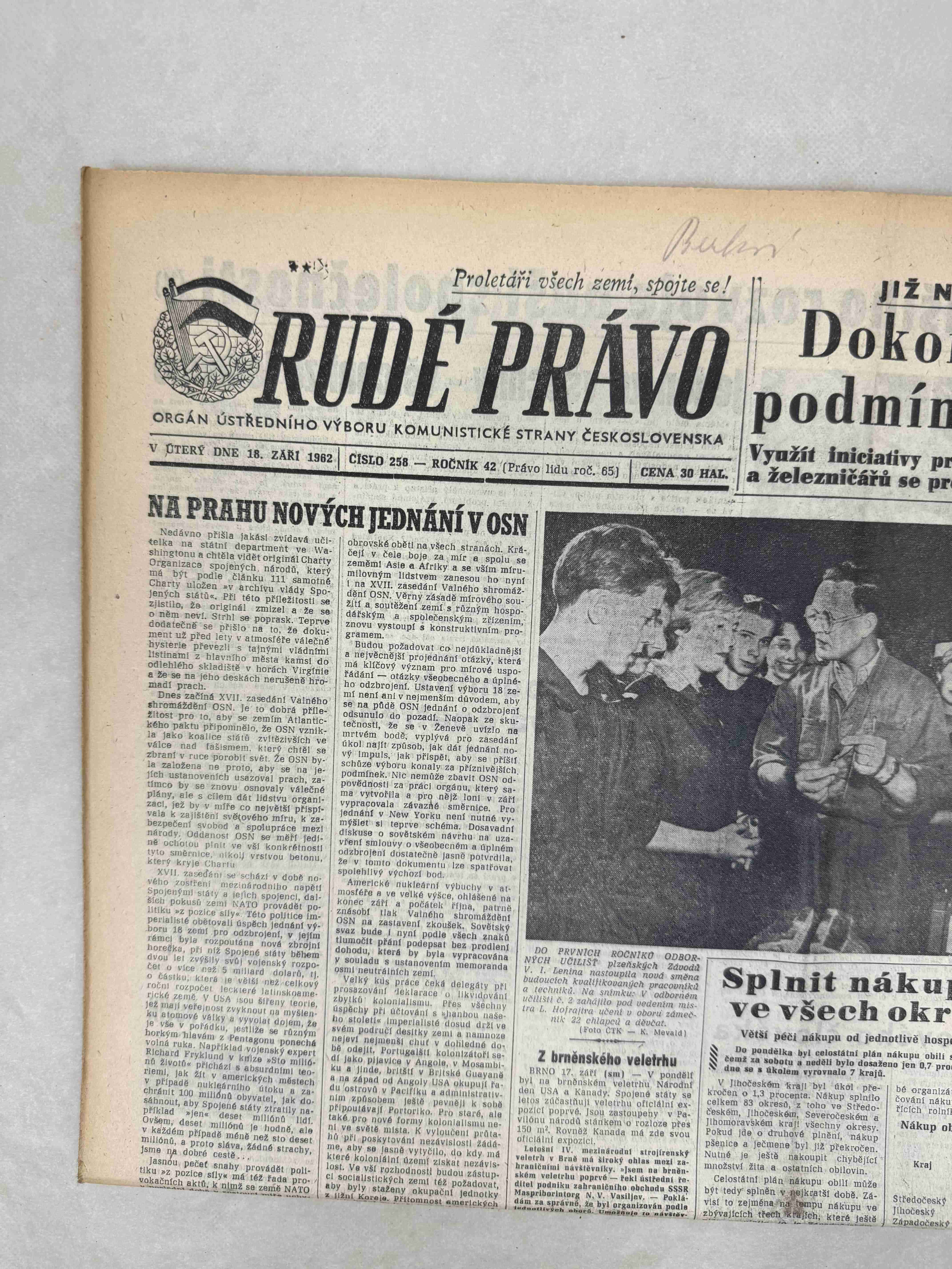 Originální dobový výtisk novin, nejedná se o reprodukci!