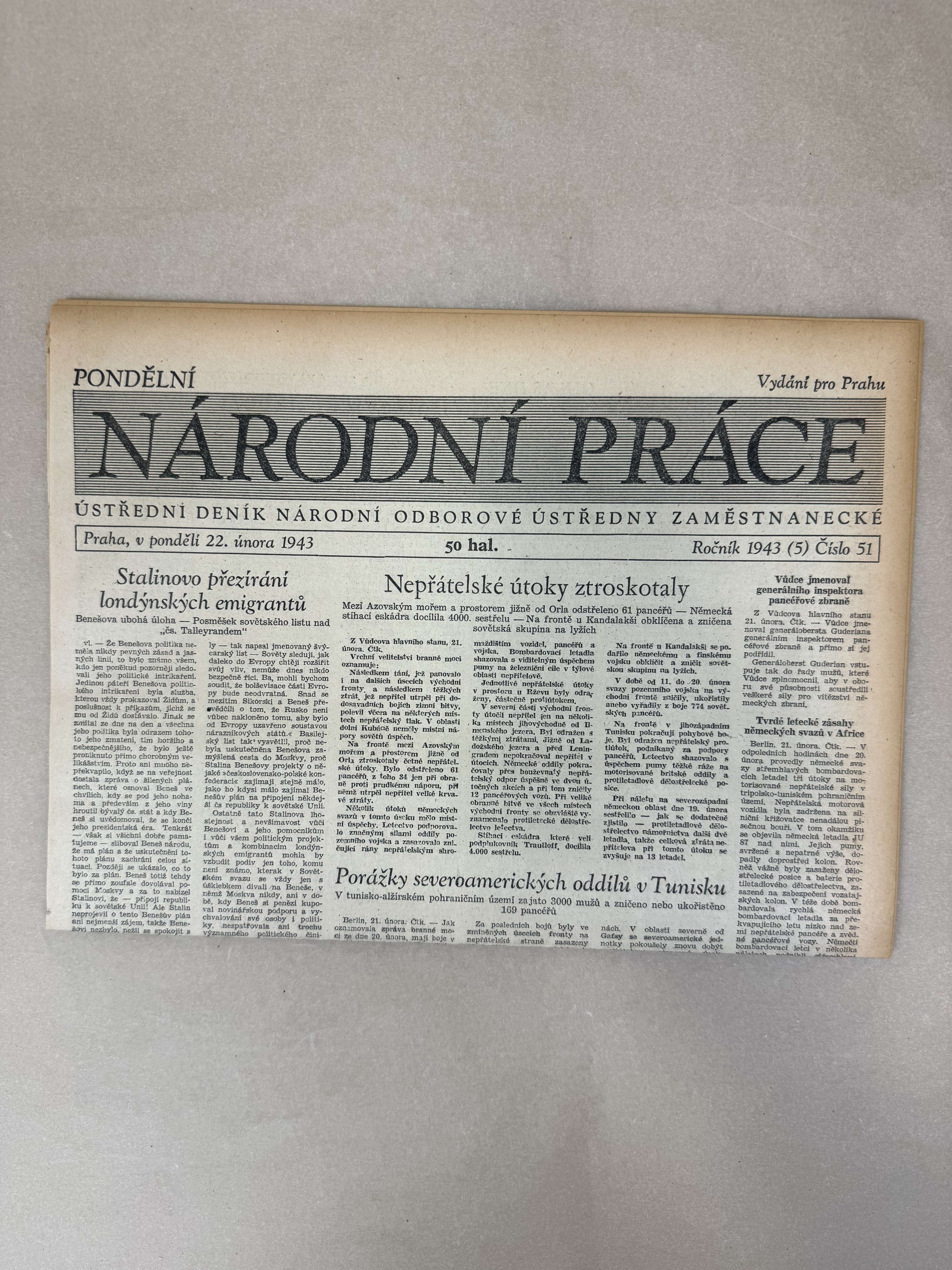Národní práce 22.2.1943
