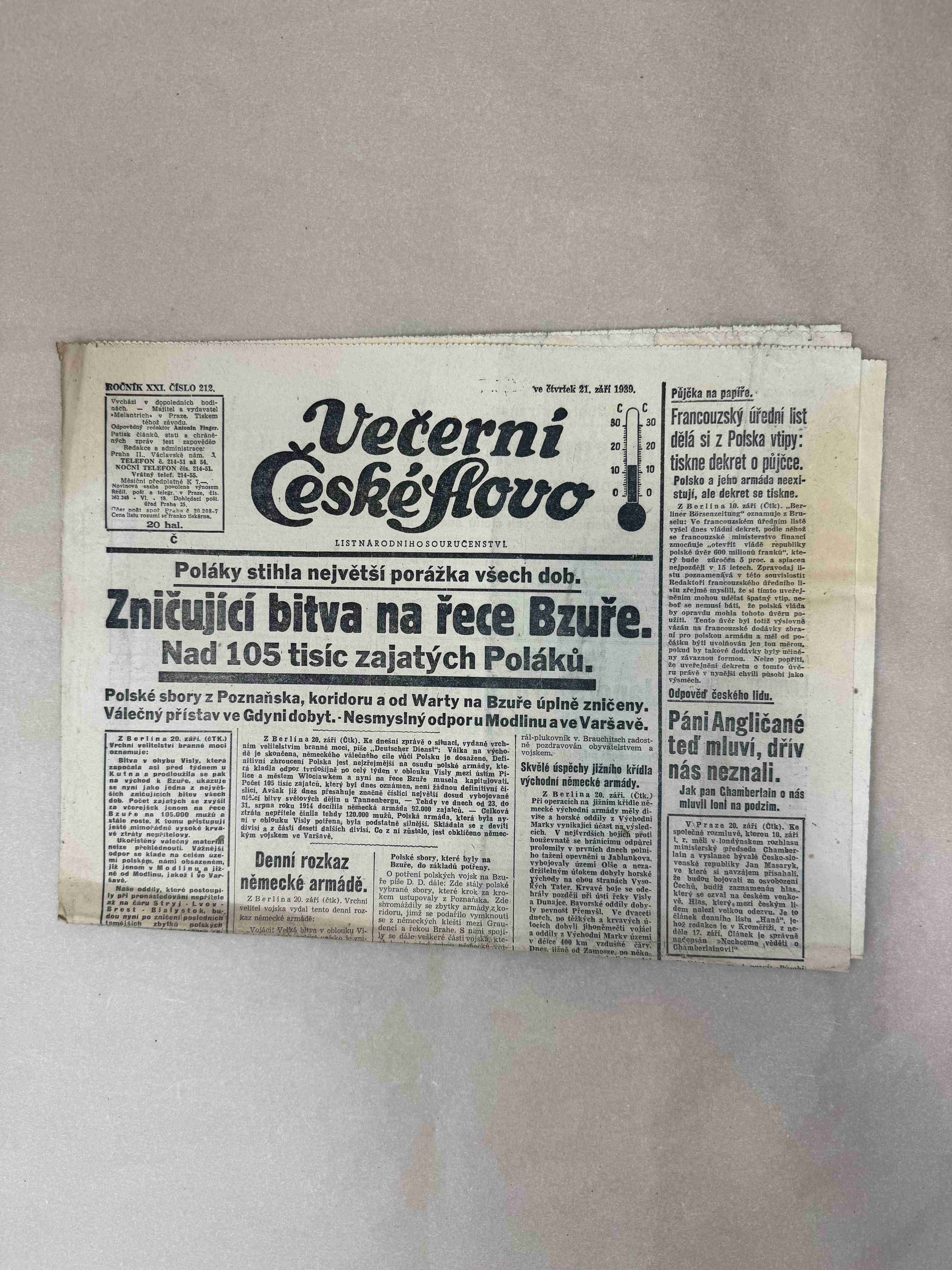 Originální dobový výtisk novin, nejedná se o reprodukci!