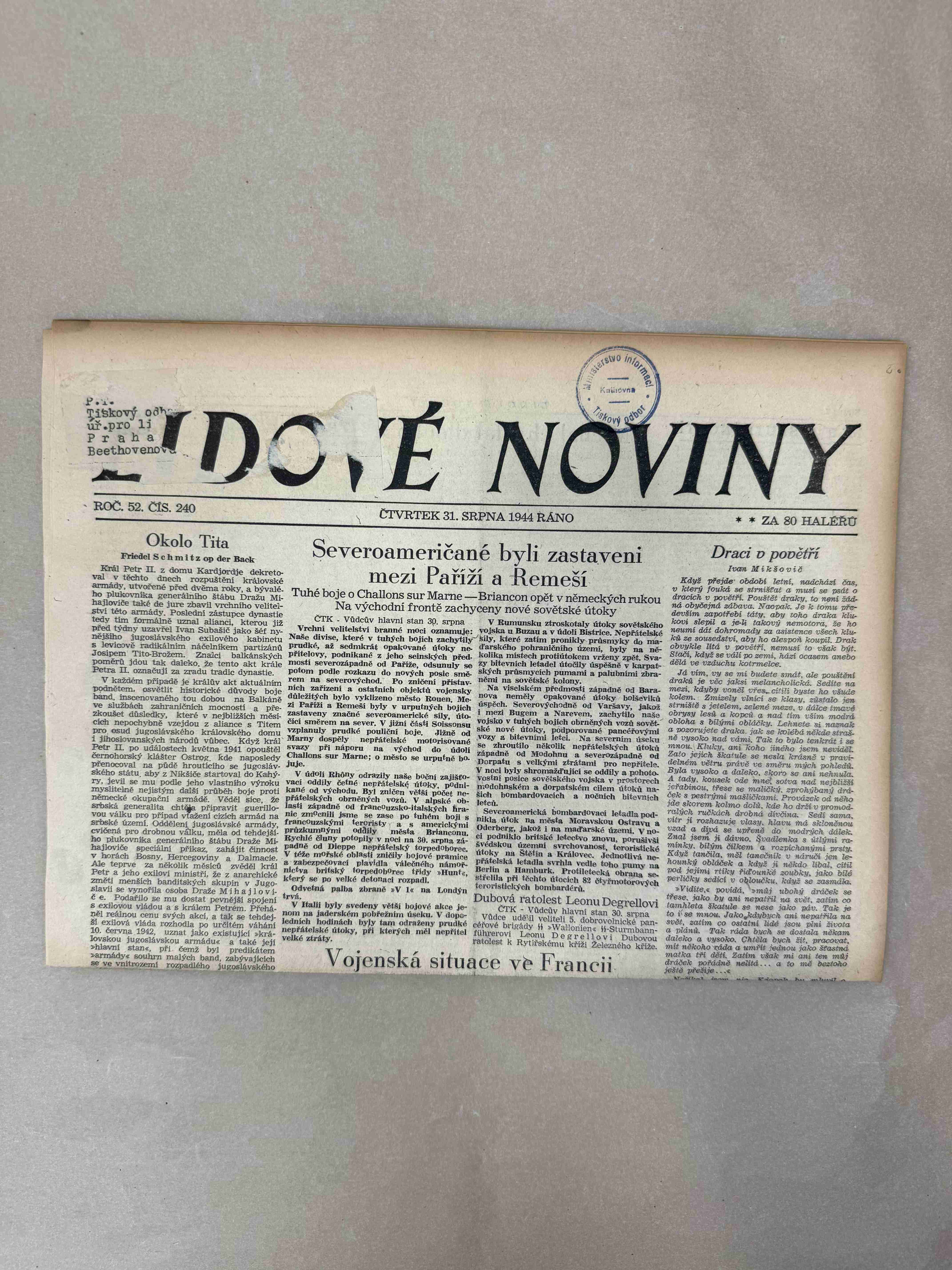 Originální dobový výtisk novin, nejedná se o reprodukci!