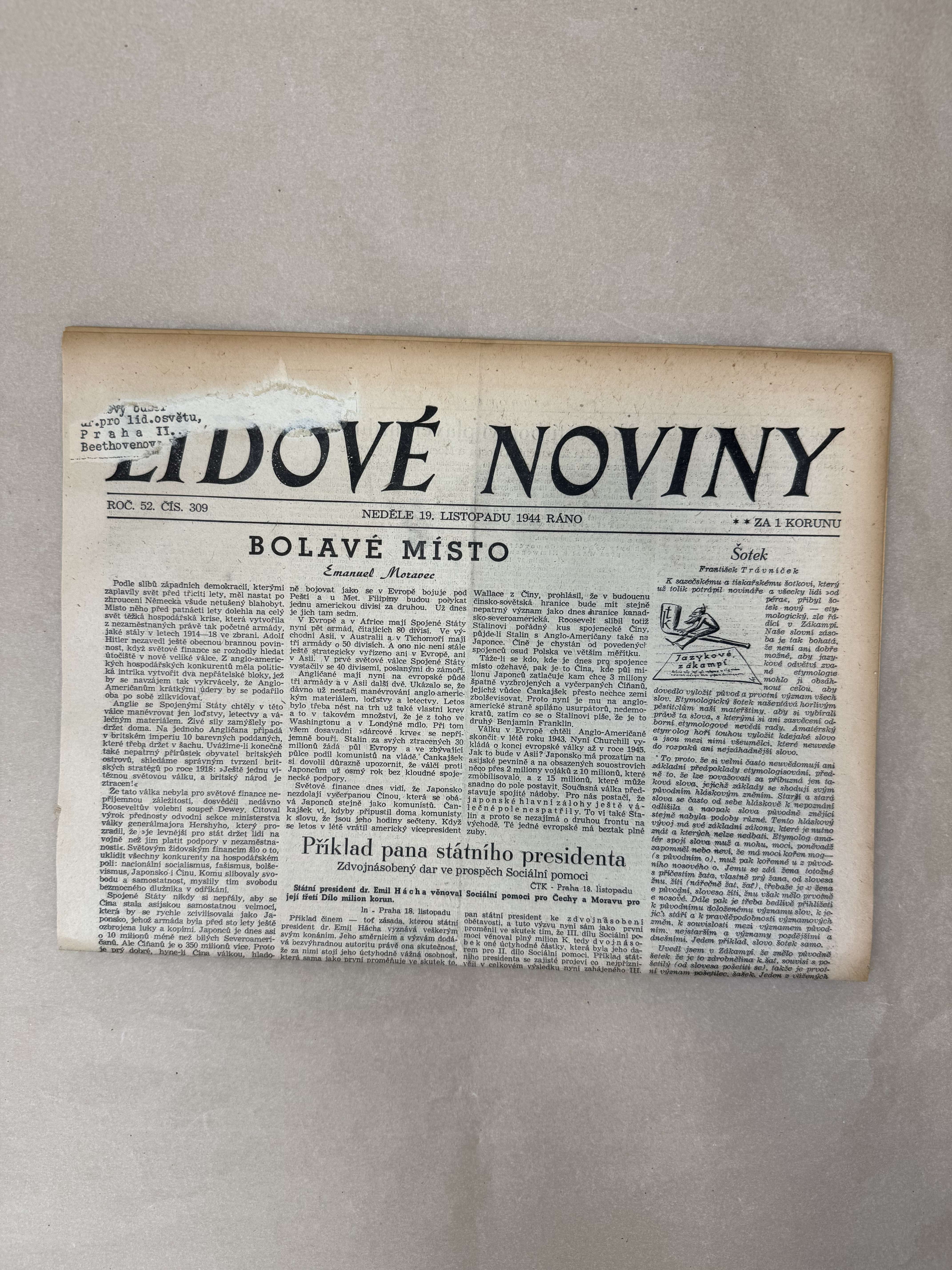 Lidové noviny 19.11.1944