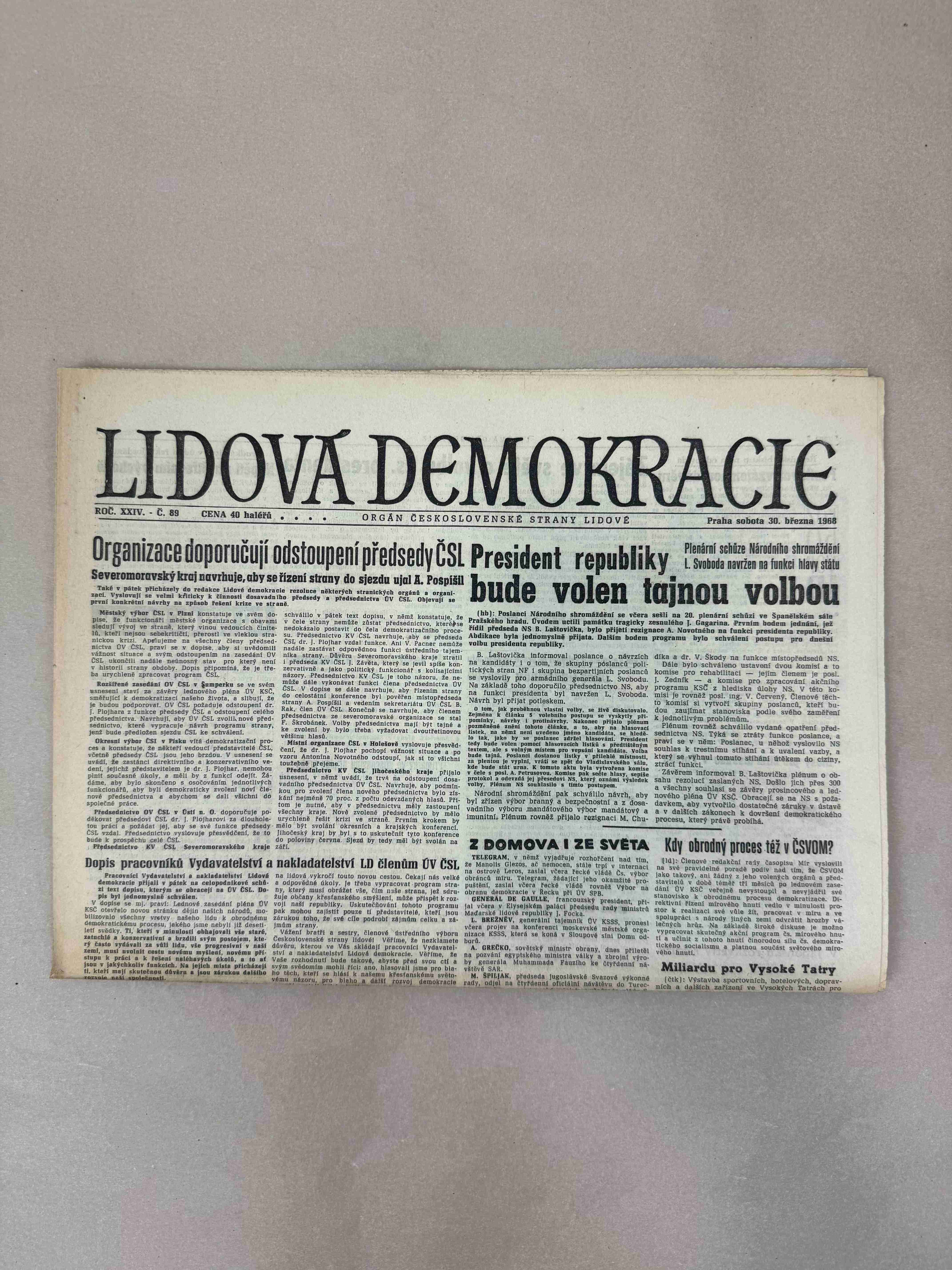 Originální dobový výtisk novin, nejedná se o reprodukci!