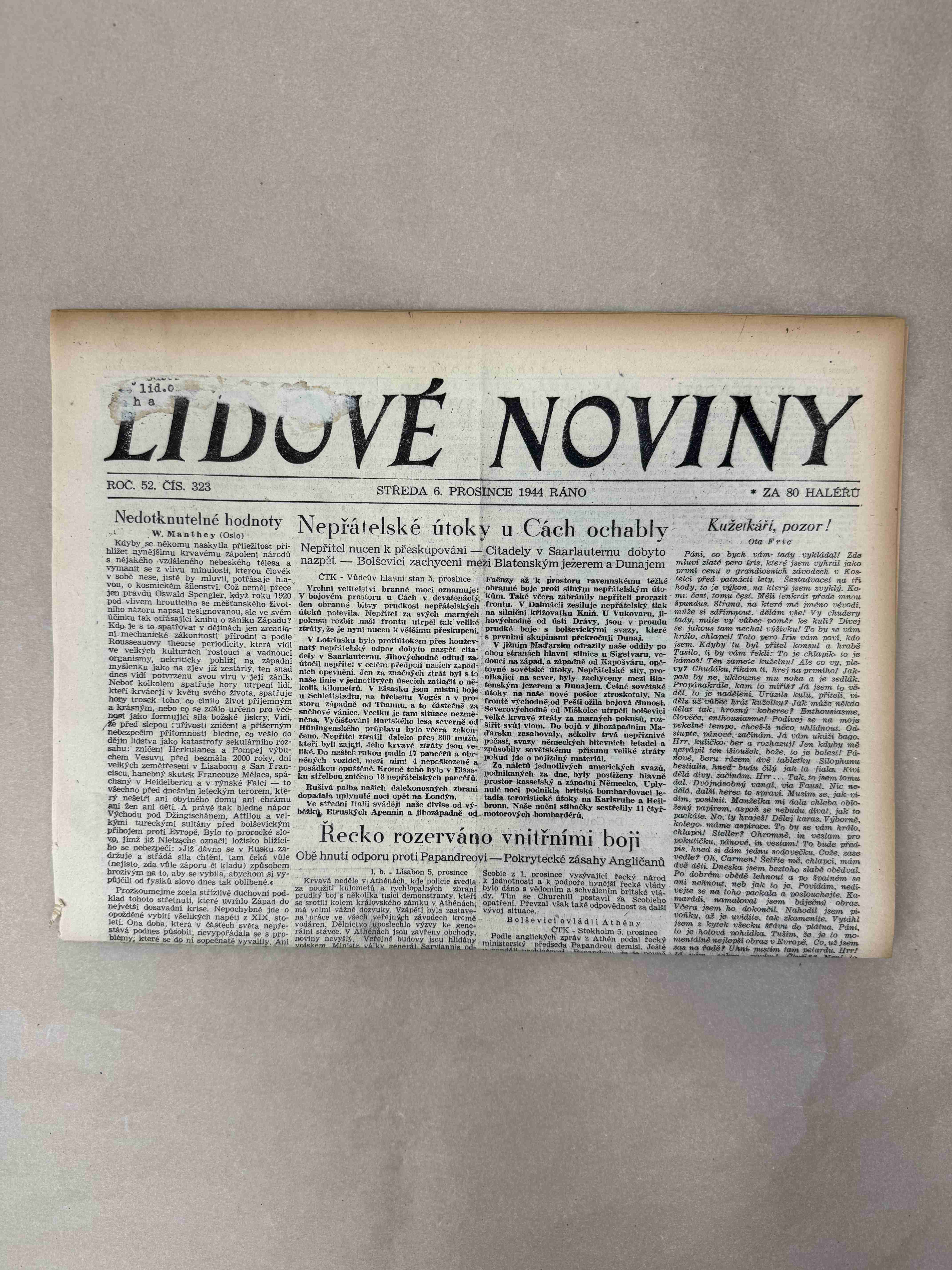 Nabízené noviny jsou určeny výhradně ke sběratelským účelům a neslouží k propagaci jakéhokoliv hnutí směřujícího k potlačení práv a svobod člověka (nacistického, komunistického apod.). Prodávající se distancuje od výše uvedených hnutí a jejich myšlenek.