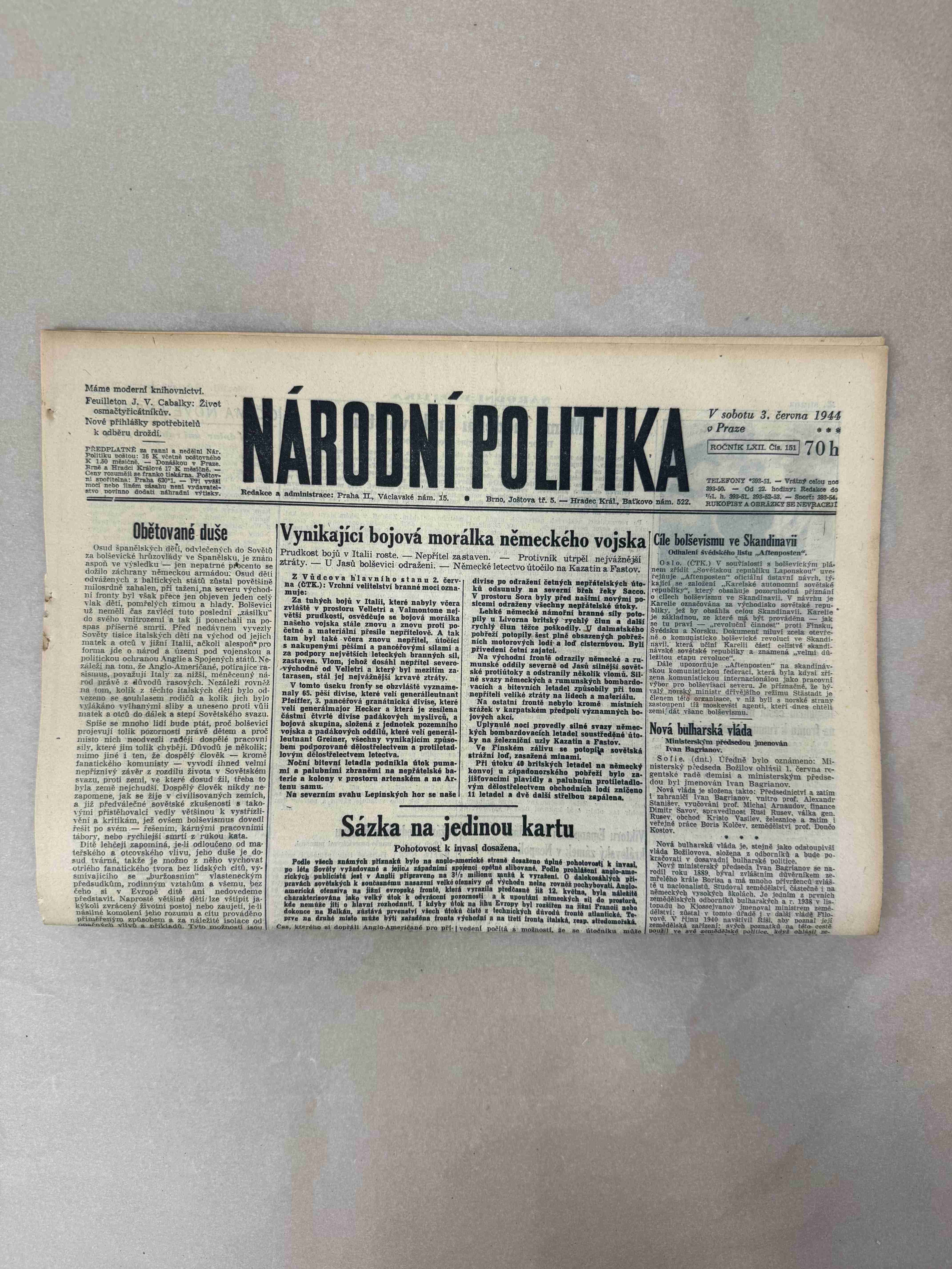 Nabízené noviny jsou určeny výhradně ke sběratelským účelům a neslouží k propagaci jakéhokoliv hnutí směřujícího k potlačení práv a svobod člověka (nacistického, komunistického apod.). Prodávající se distancuje od výše uvedených hnutí a jejich myšlenek.