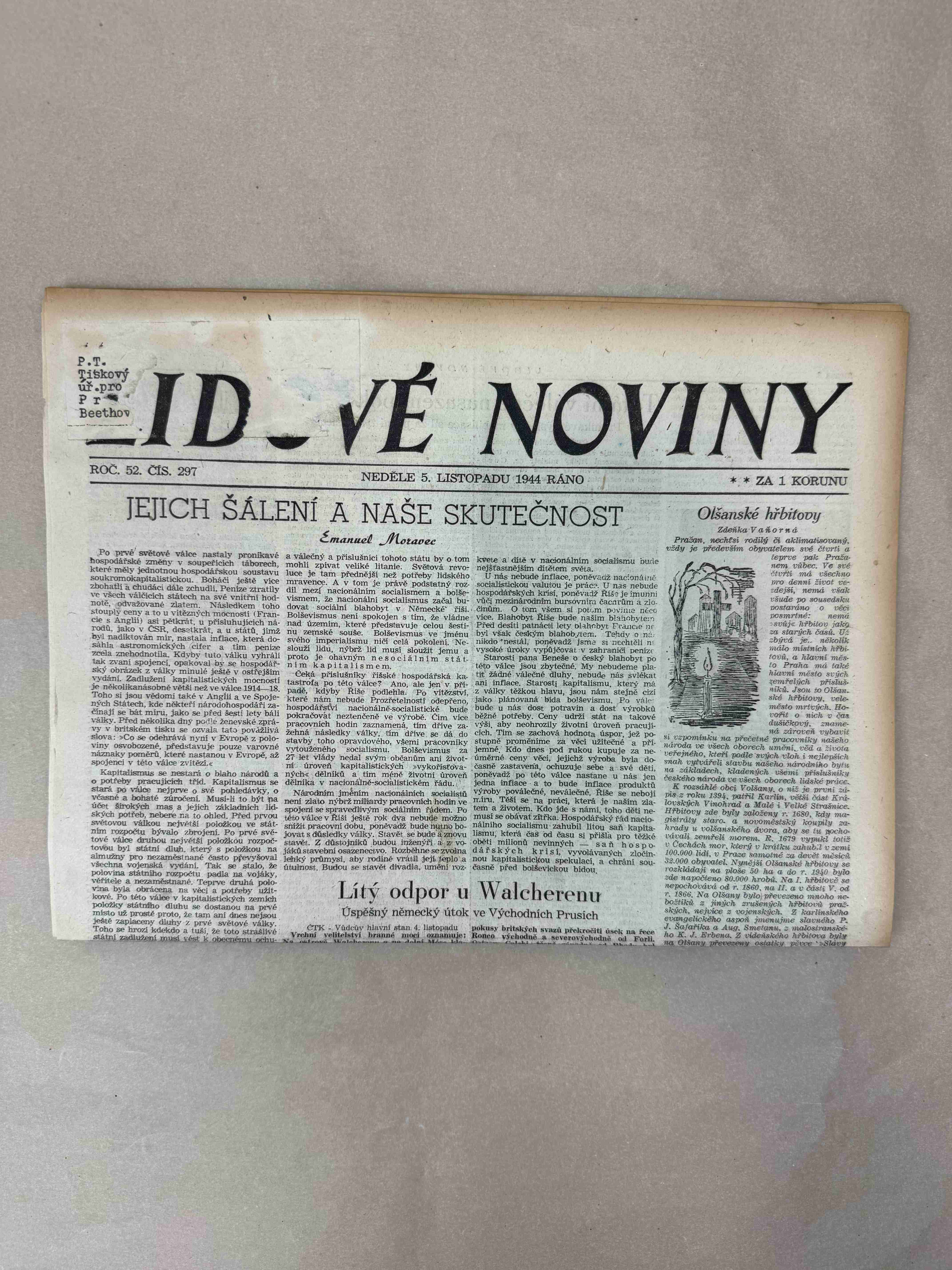 Originální dobový výtisk novin, nejedná se o reprodukci!