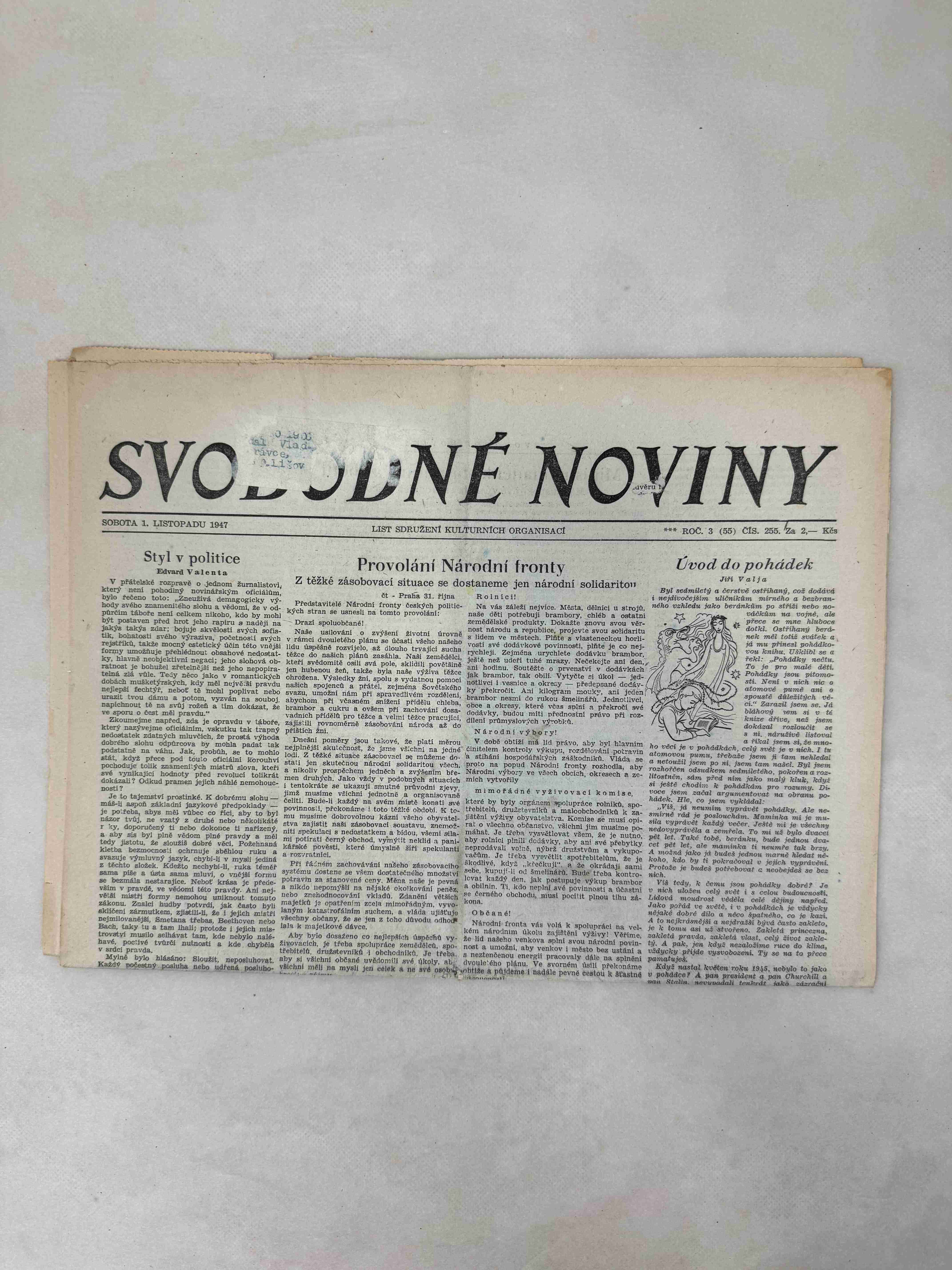 Originální dobový výtisk novin, nejedná se o reprodukci!