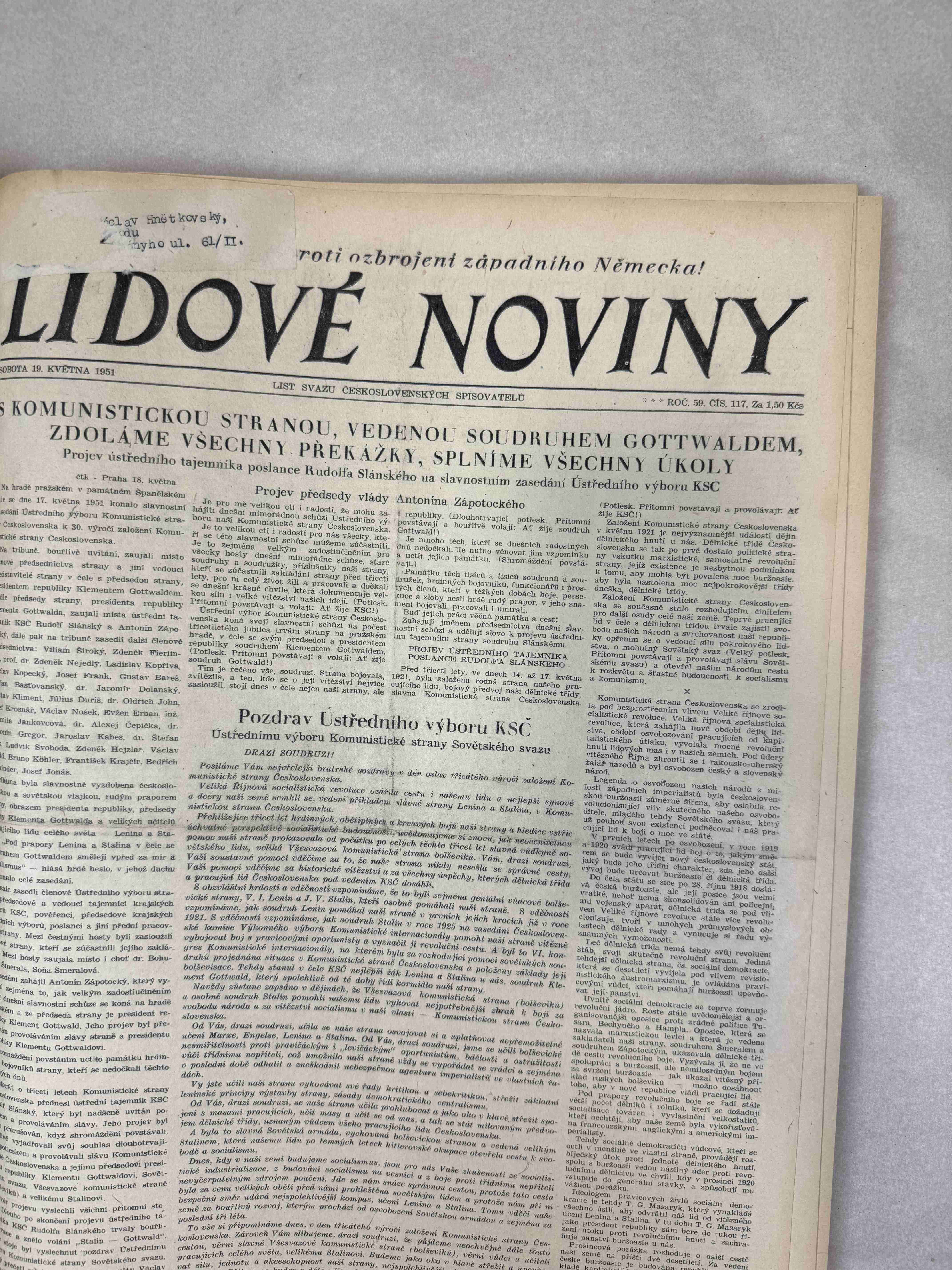 Nabízené noviny jsou určeny výhradně ke sběratelským účelům a neslouží k propagaci jakéhokoliv hnutí směřujícího k potlačení práv a svobod člověka (nacistického, komunistického apod.). Prodávající se distancuje od výše uvedených hnutí a jejich myšlenek.
