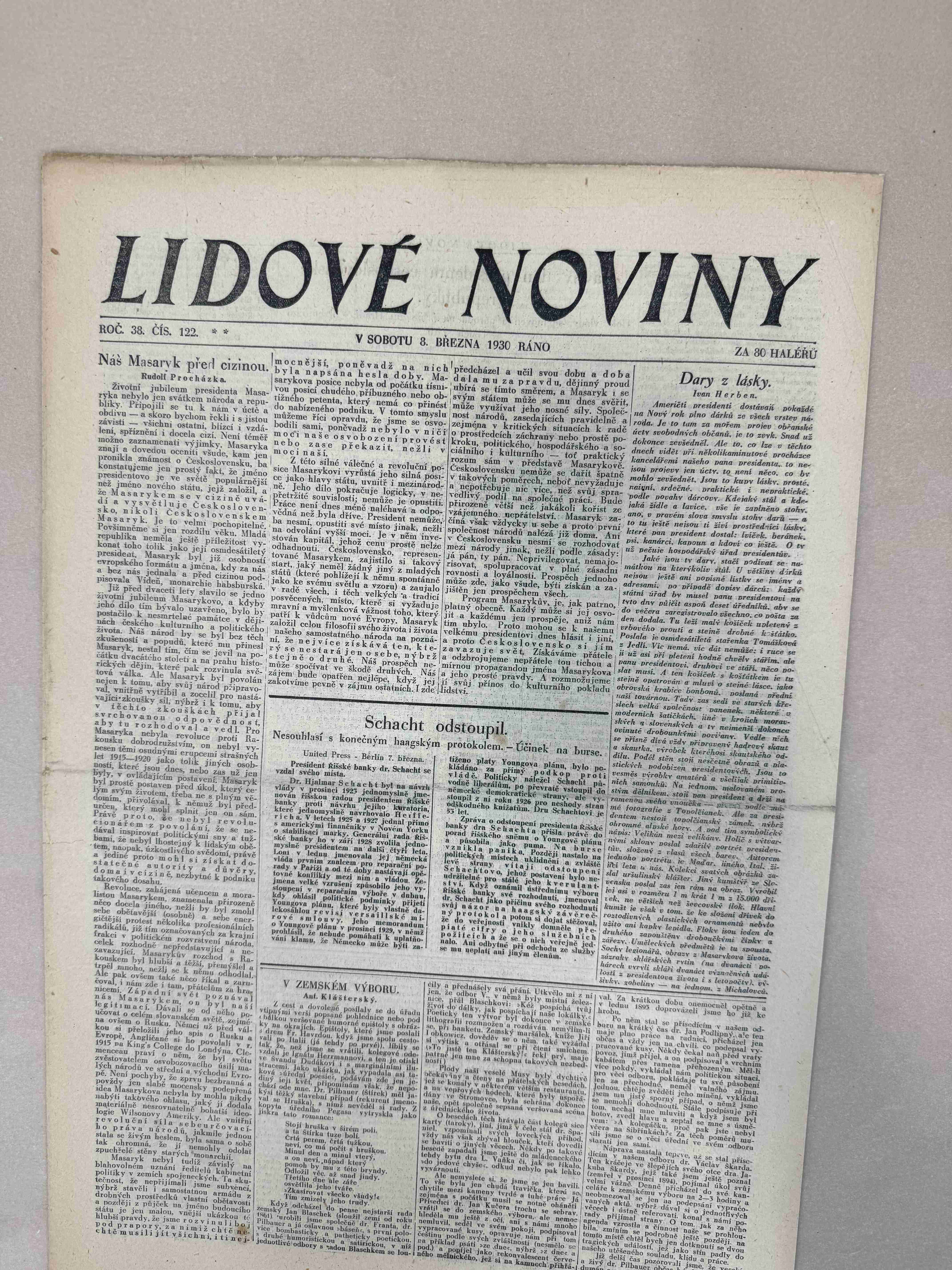Originální dobový výtisk novin, nejedná se o reprodukci!