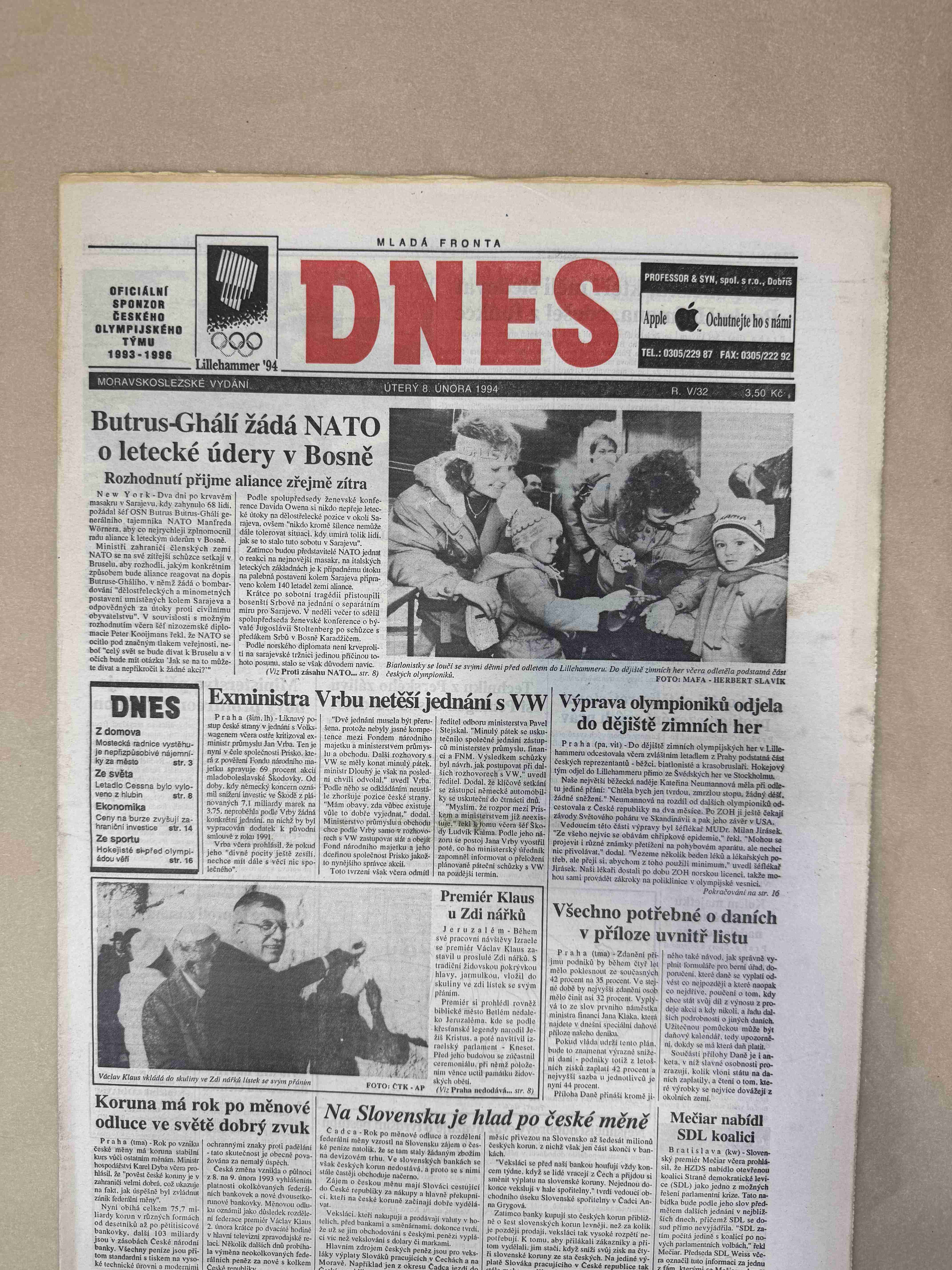 Originální dobový výtisk novin, nejedná se o reprodukci!
