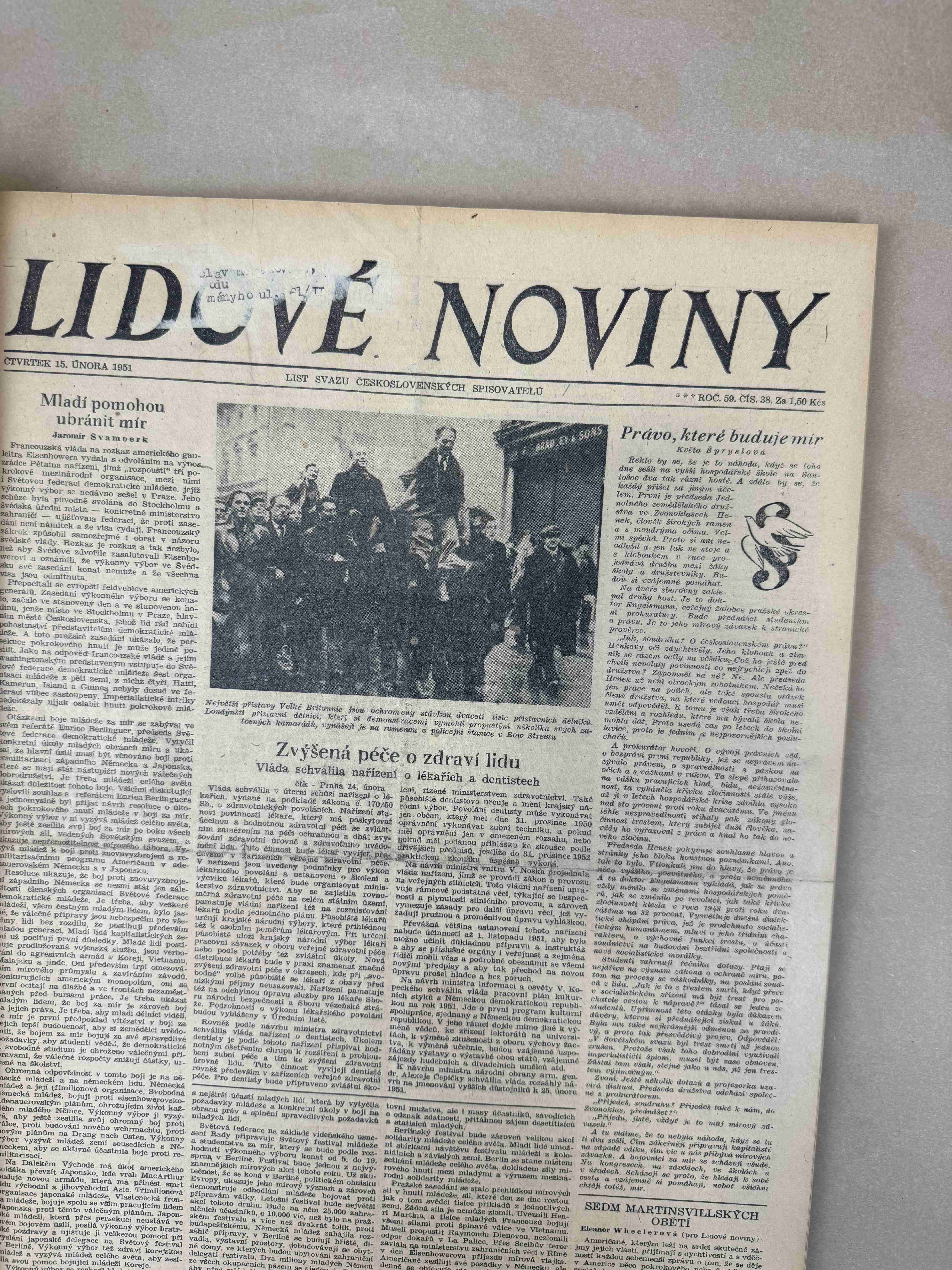 Originální dobový výtisk novin, nejedná se o reprodukci!