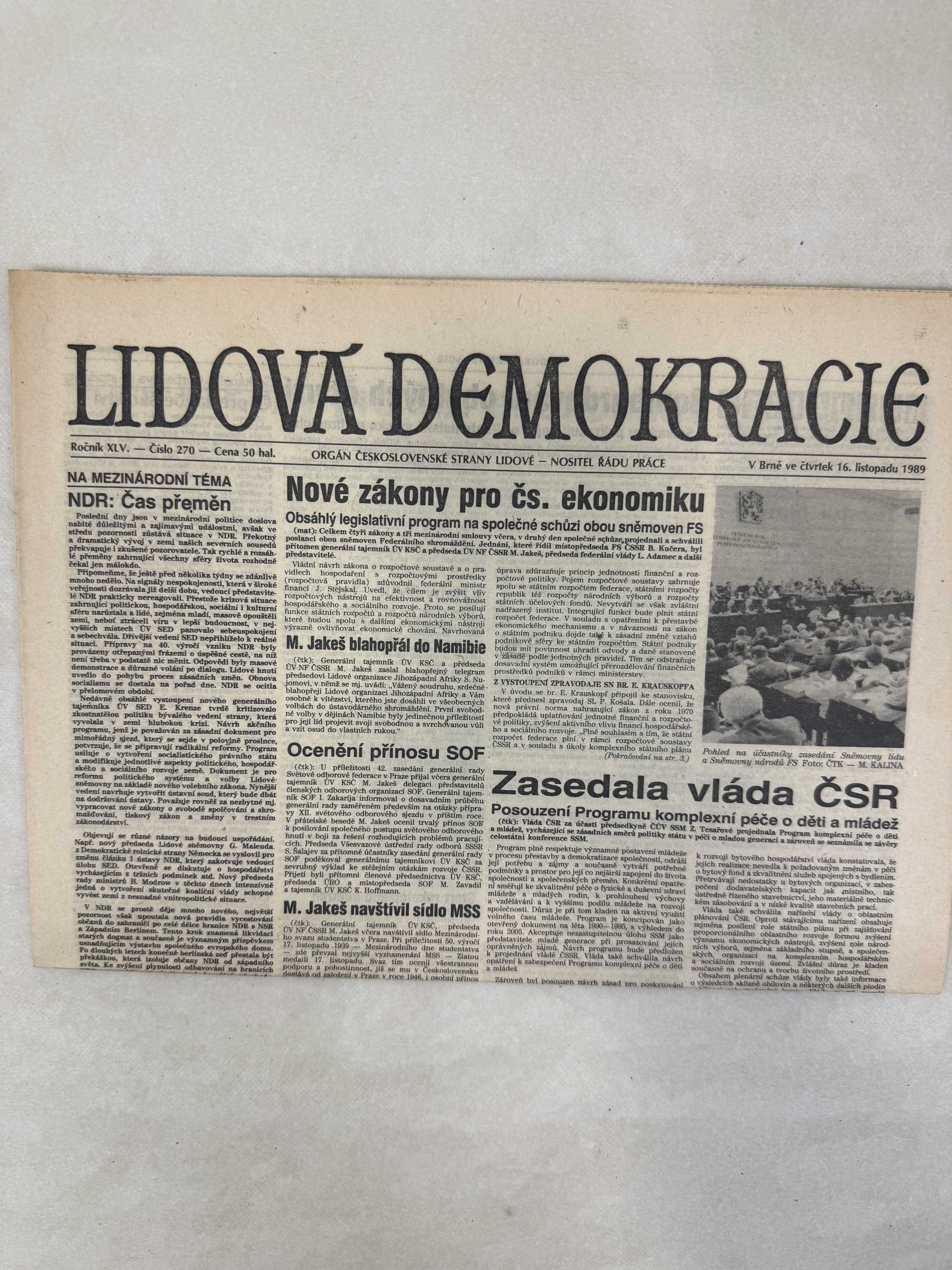 Lidová demokracie 16.11.1989