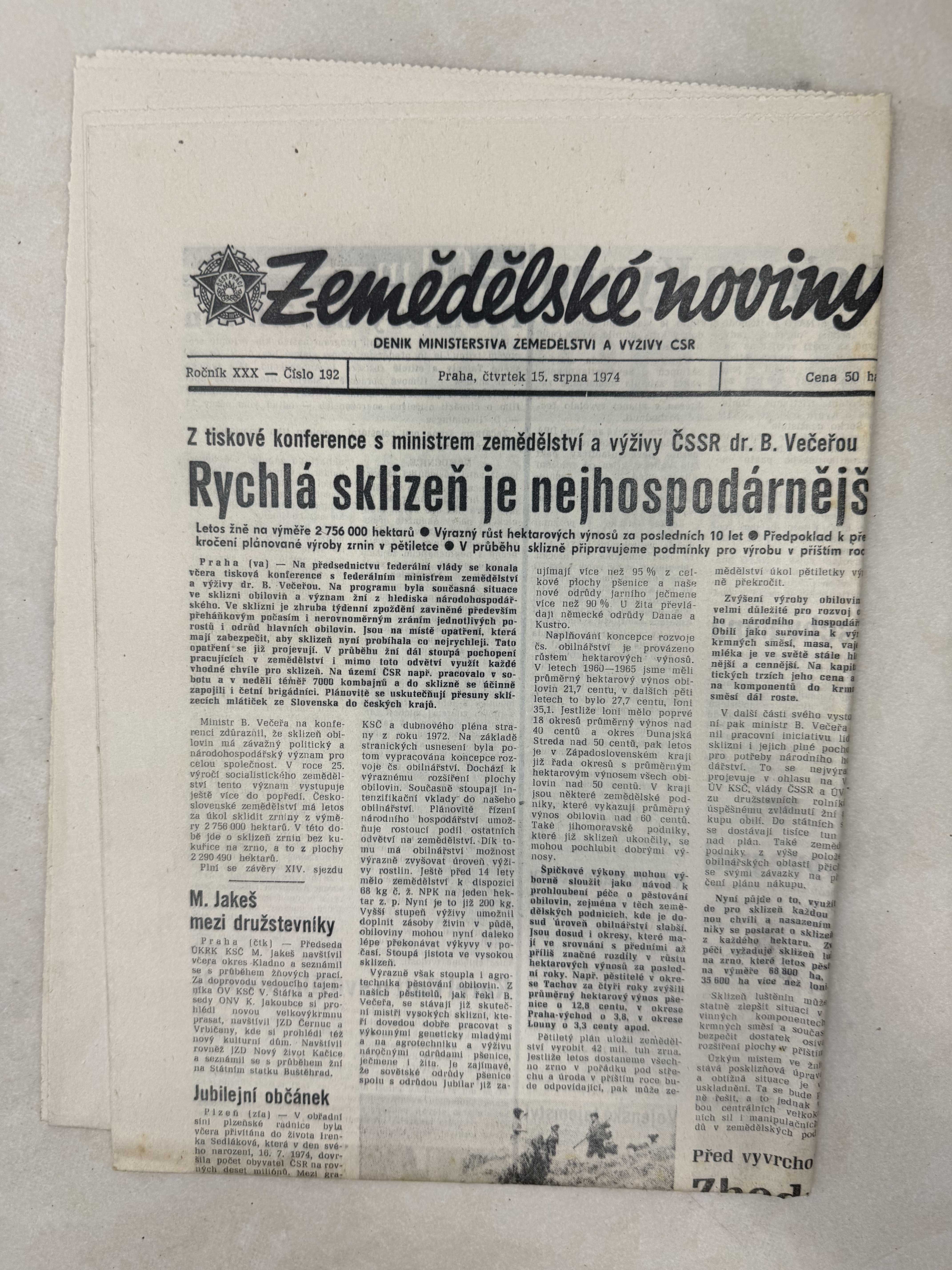 Zemědělské noviny 15.8.1974