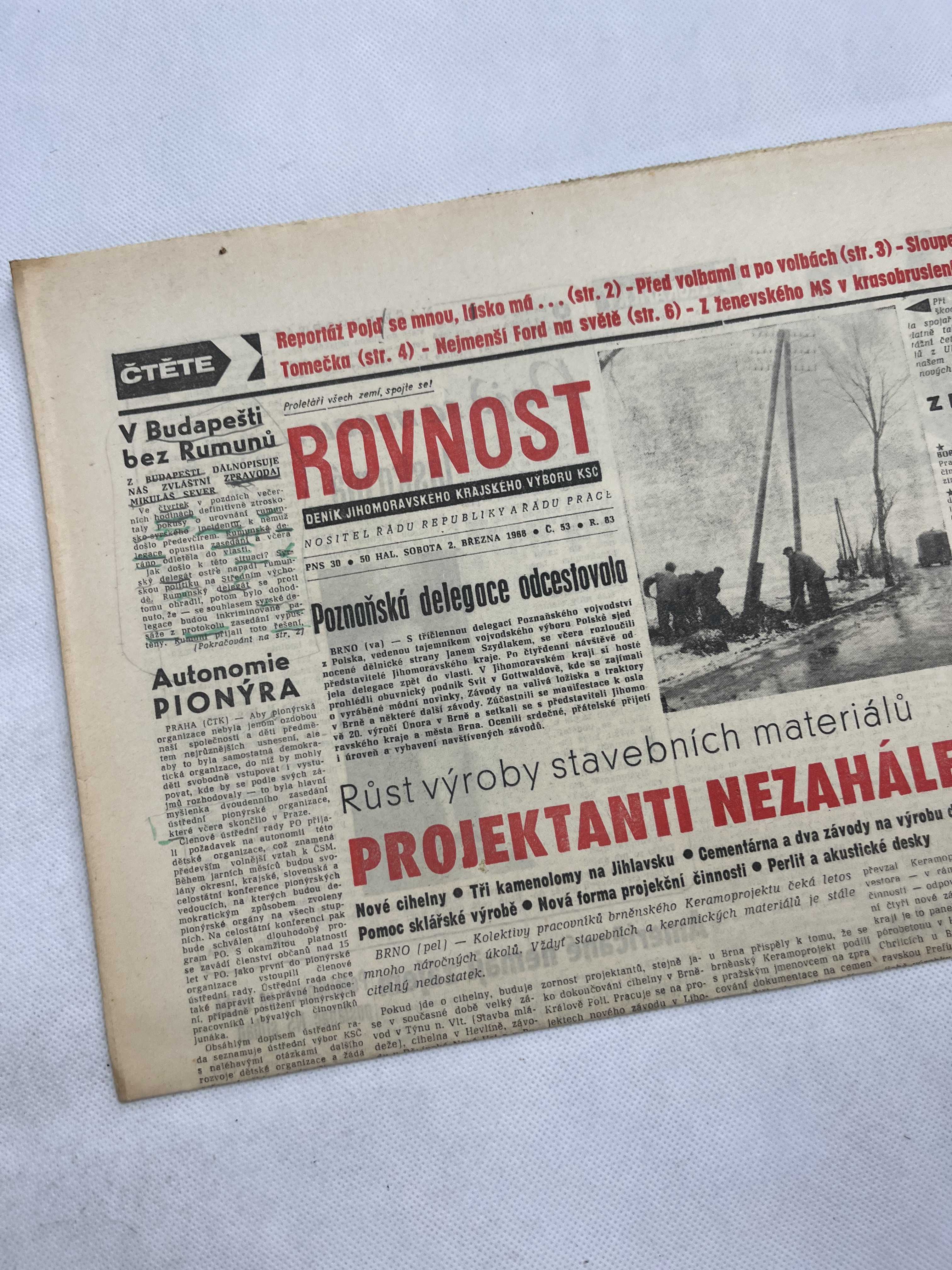 Noviny Rovnost 2.3.1968
