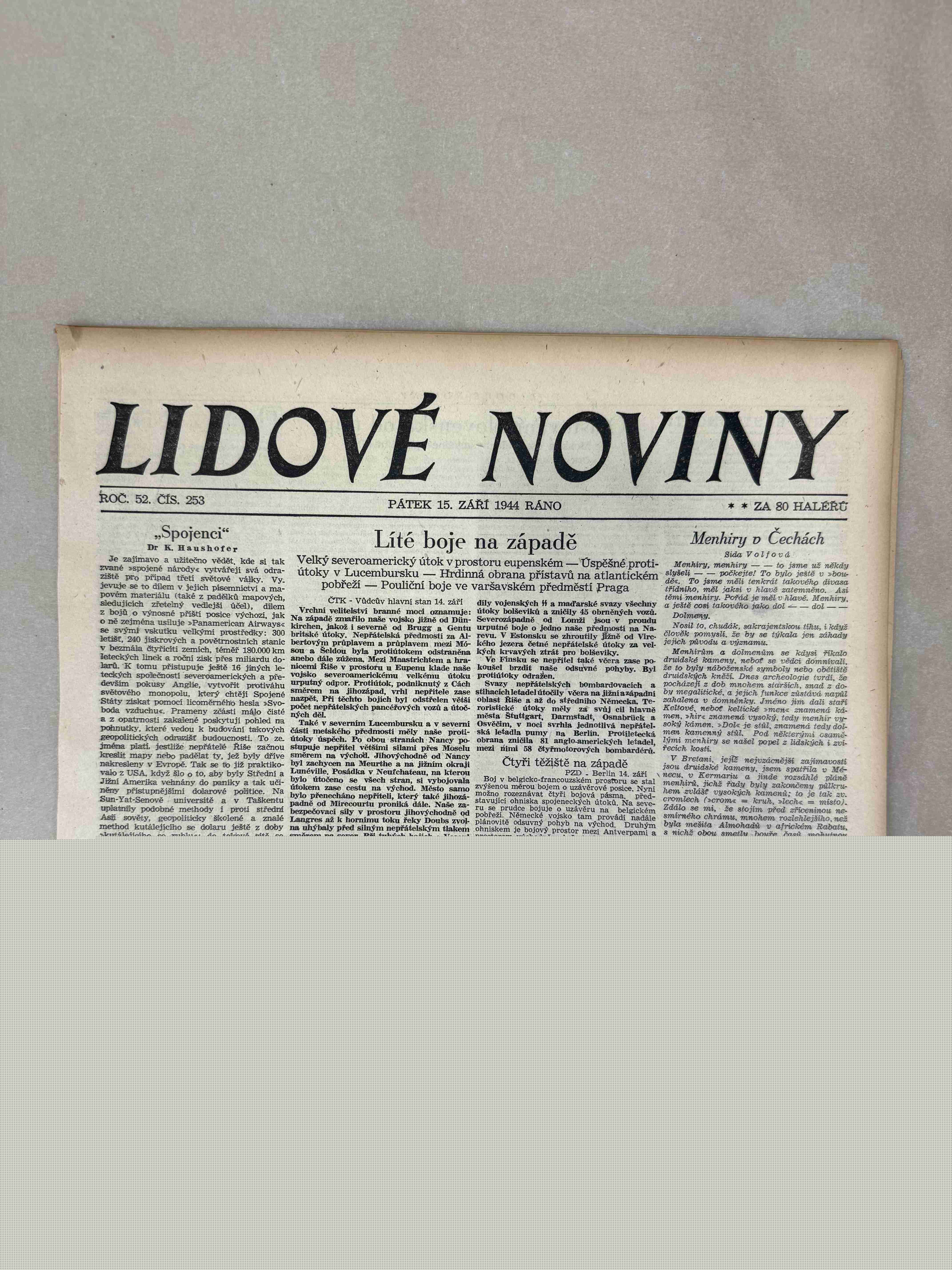 Originální dobový výtisk novin, nejedná se o reprodukci!