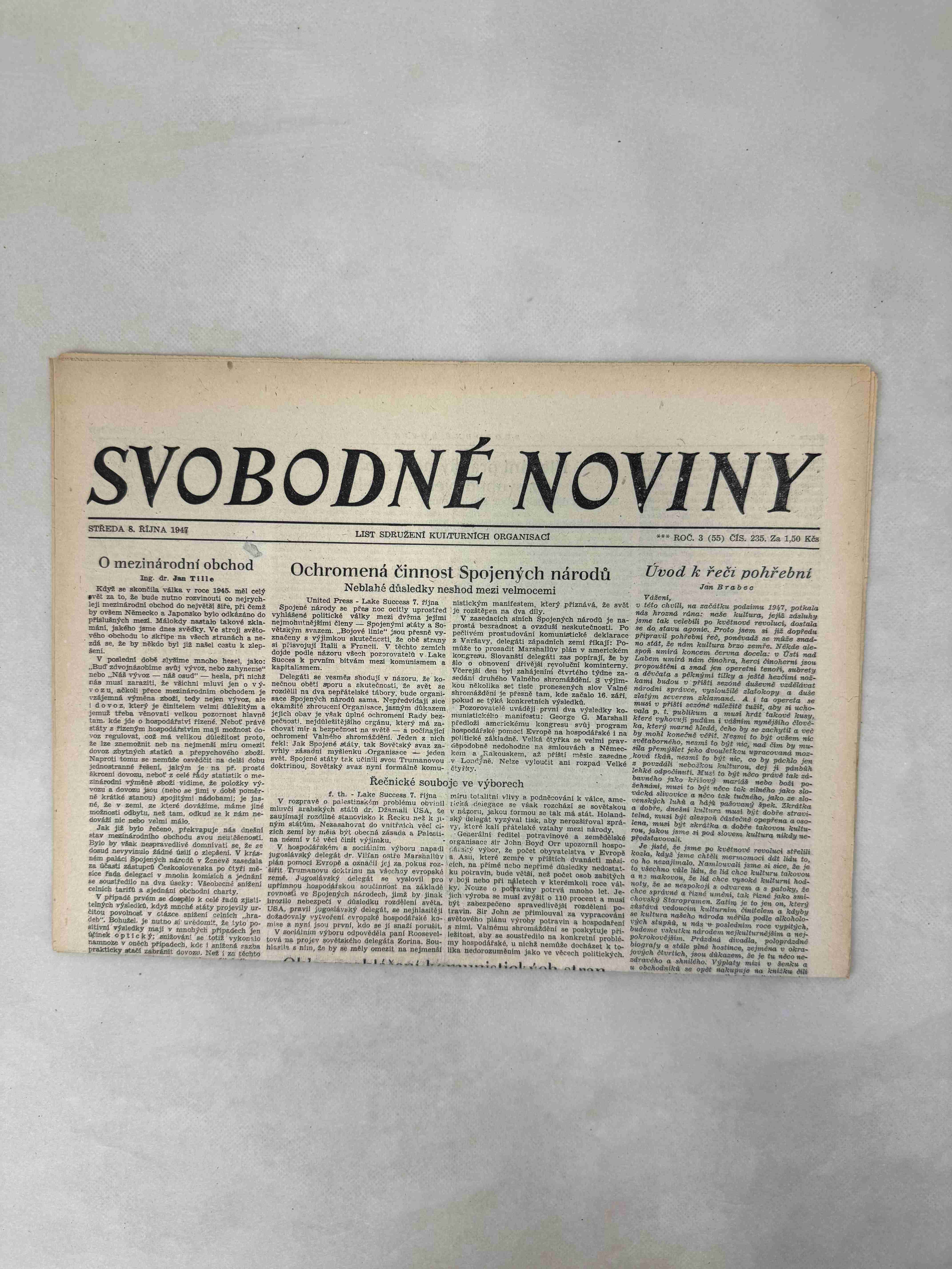 Originální dobový výtisk novin, nejedná se o reprodukci!