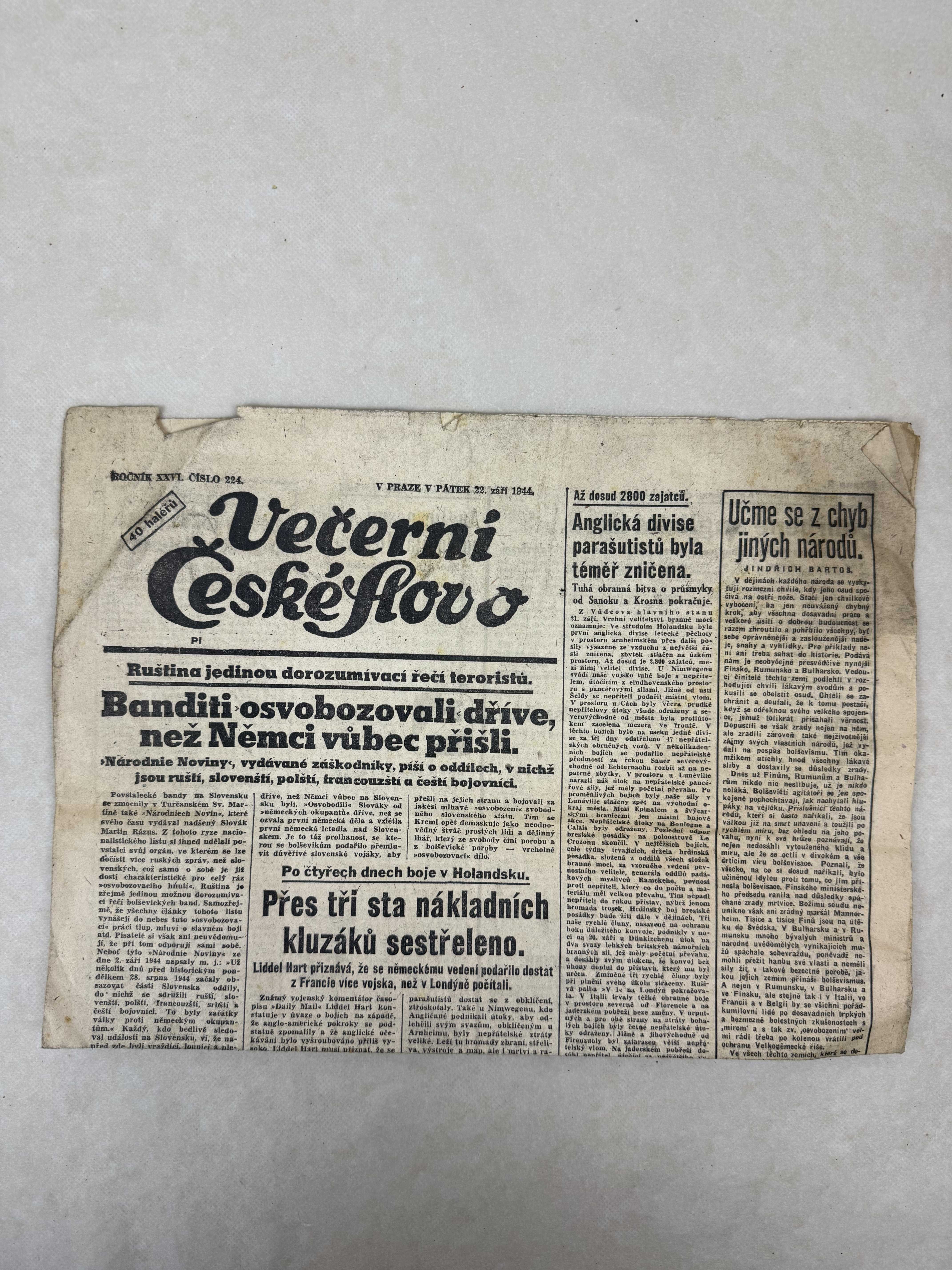 Večerní České slovo 22.9.1944