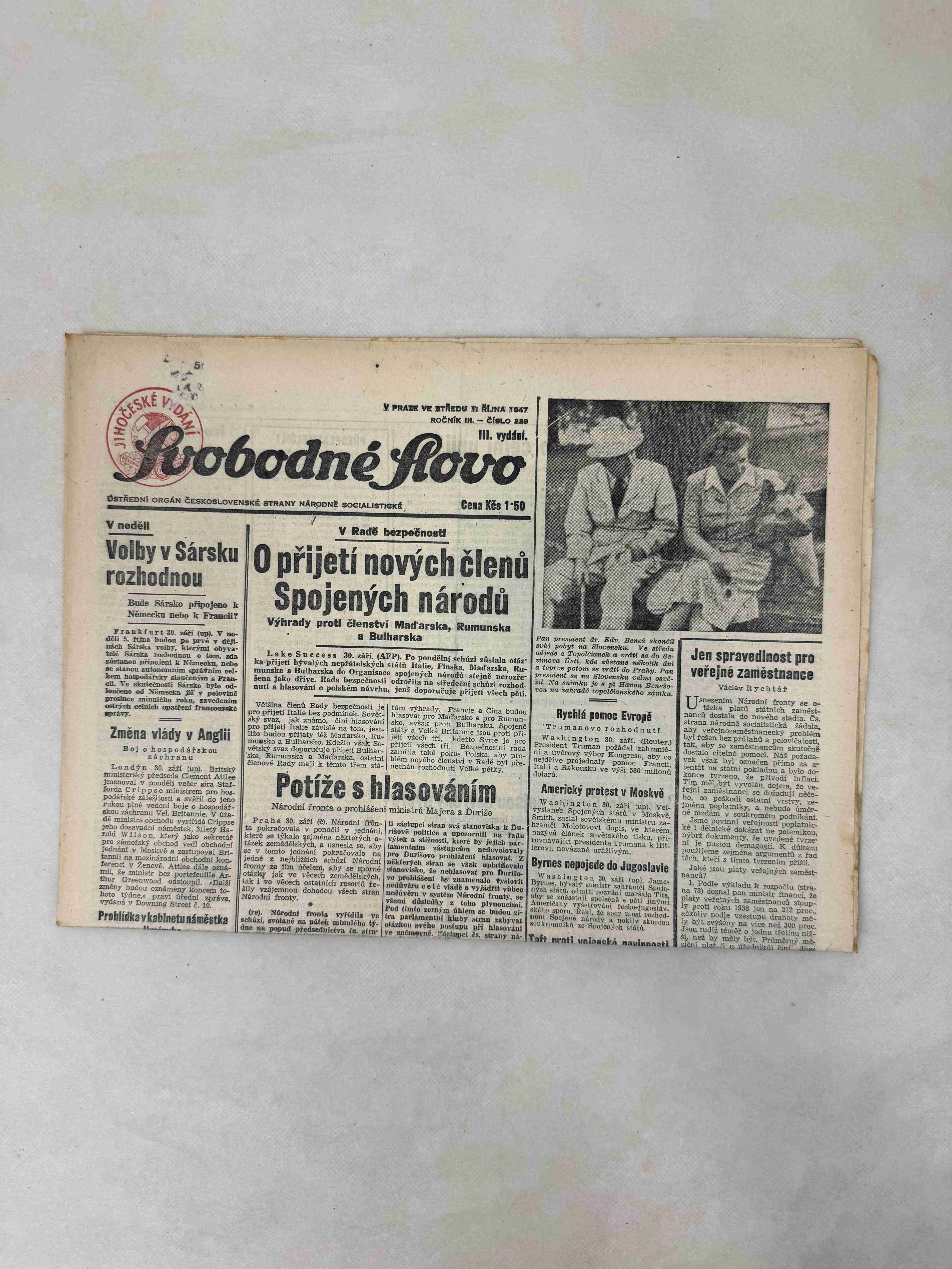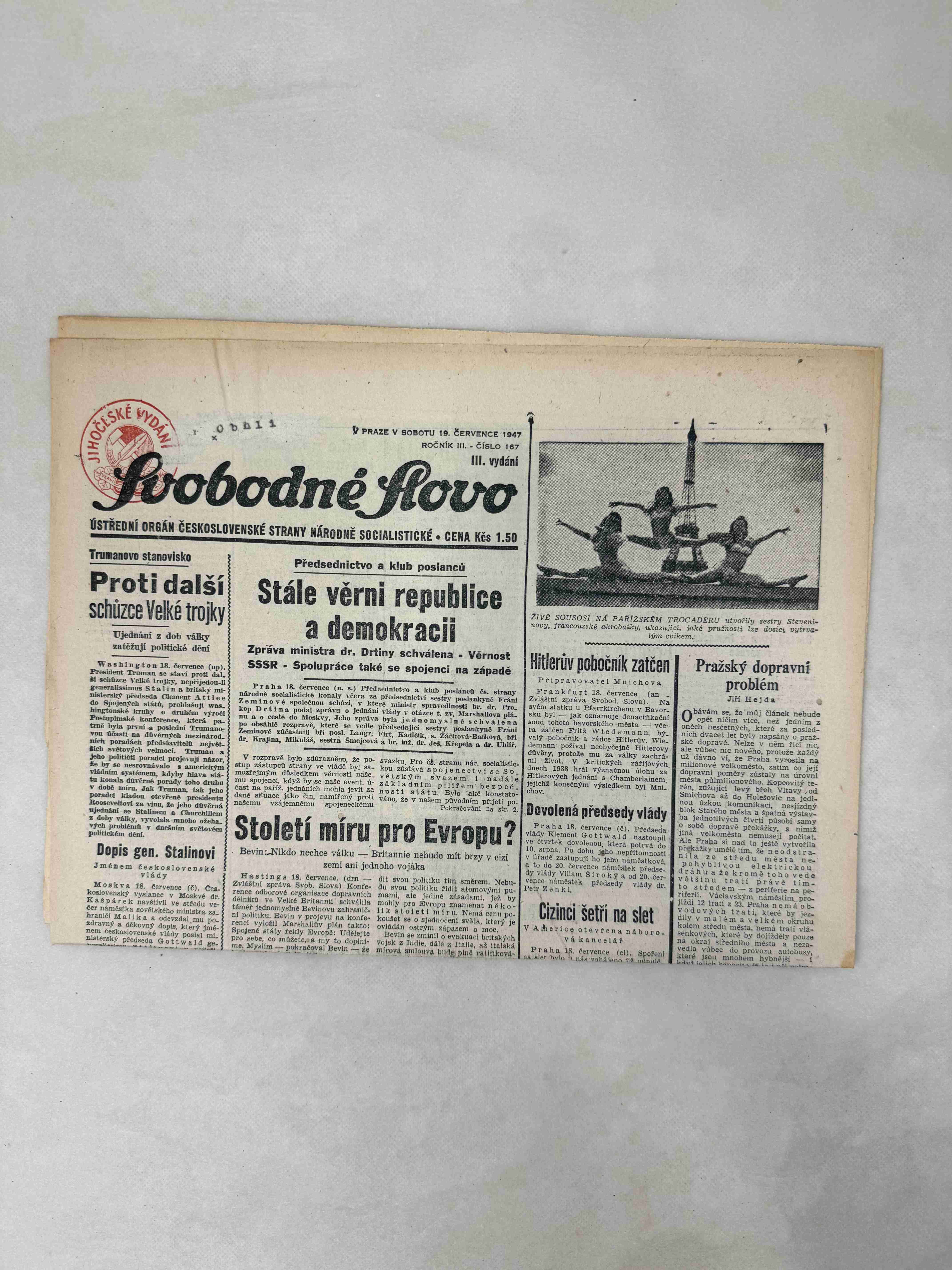 Originální dobový výtisk novin, nejedná se o reprodukci!