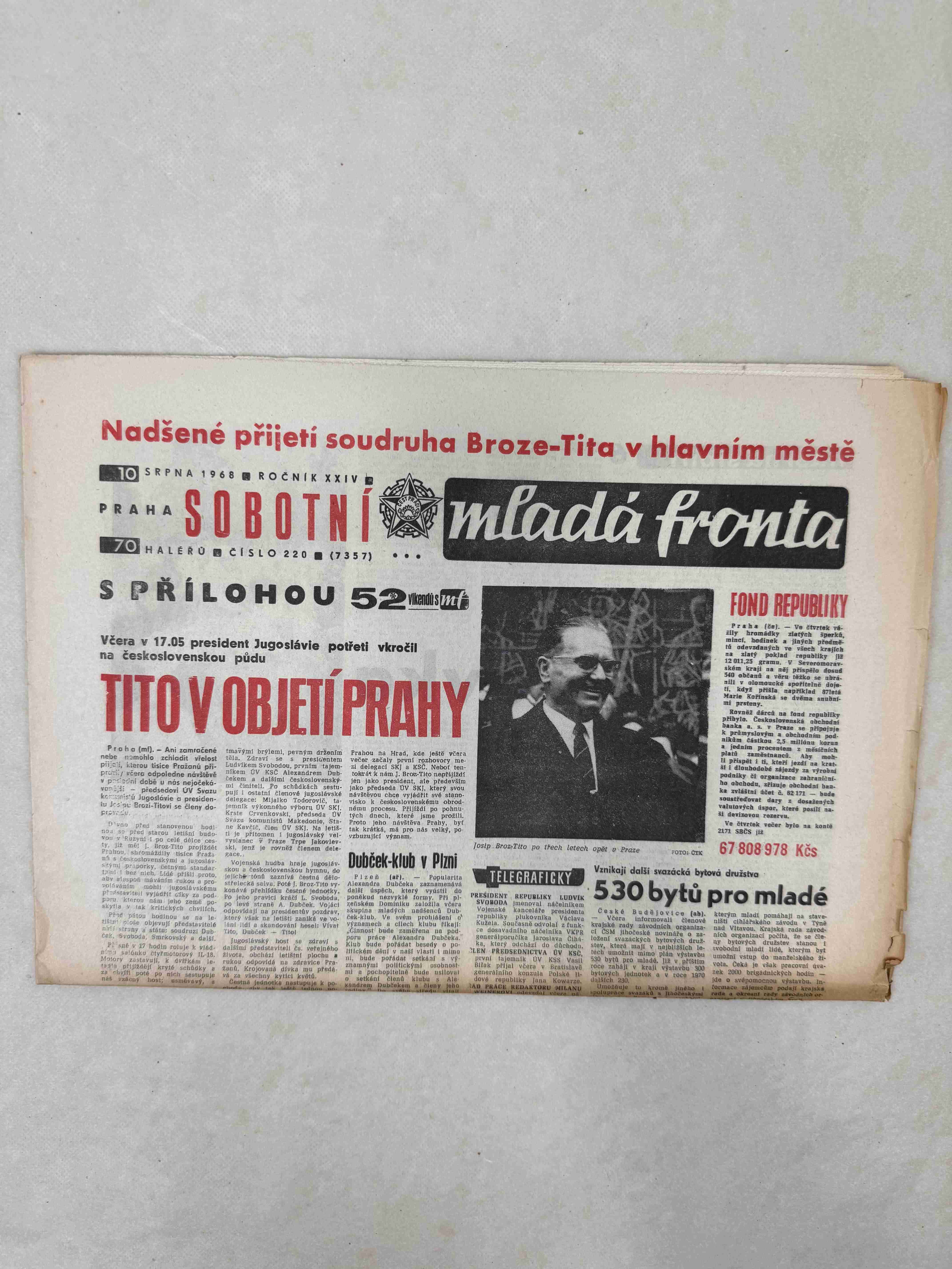 Nabízené noviny jsou 100% originální, jedná se o dobový výtisk.